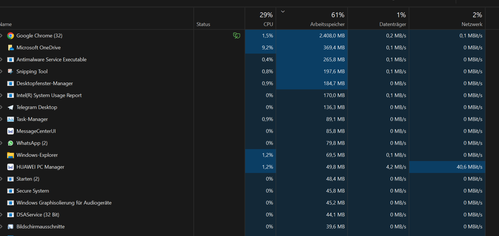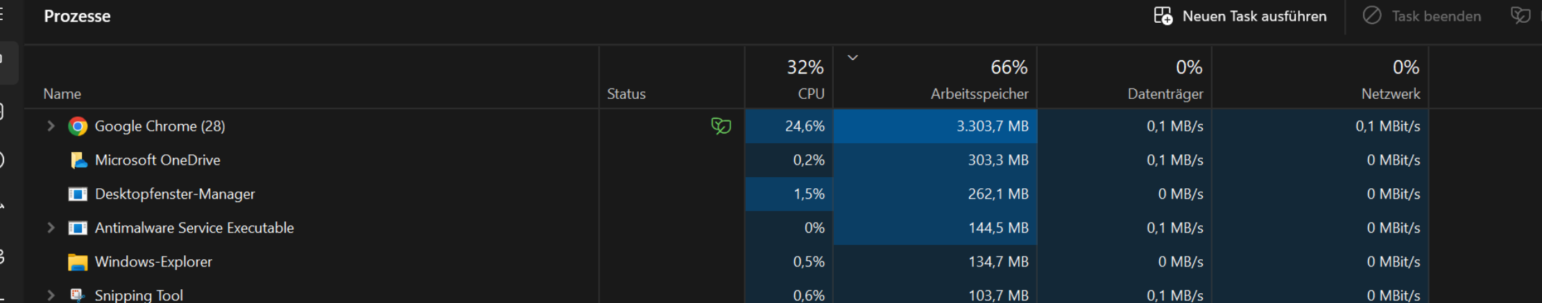 Super. Chrome schreibt auch viel Caching Daten auf die Platte/SSD. Behalte das auch im Auge. Das könnte auch Einfluss haben.dicker2503 schrieb:Ich arbeite jetzt noch ein wenig mit Chrome und dann kann ich erneut Screenshots posten.