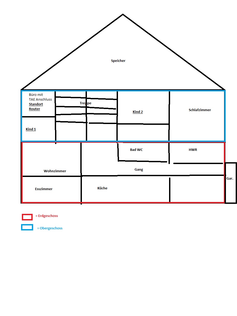 Von der Garage könnte man mit dem Glasfaserkabel in den HWR und von dort aus in den Speicher kommen über ein kleines leeres Rohr. Aber man könnte auch vom Übergabepunkt in der Garage mit einem normalen Netzwerkkabel weiter in den Speicher/oder zum Router gehen, sagte der von Toni mir. Vielleicht wollt ihr das in den Überlegungen miteinbeziehen, nicht das ich dann wieder alles anders verlegen muss…..