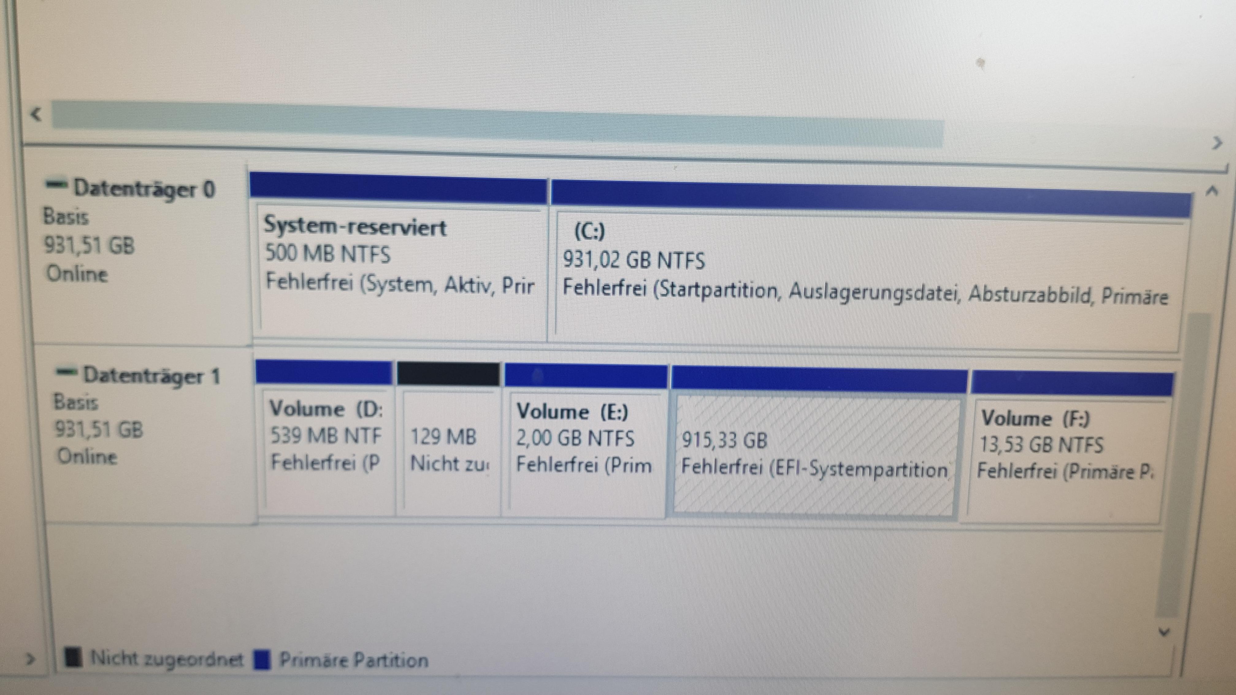 In der Datenträgerverwaltung ist die Partition zwar da, es lässt sich aber nichts damit tun. Ich kann keinen Laufwerksbuchstaben auswählen und es steht nur "EFI-Systempartition" da.