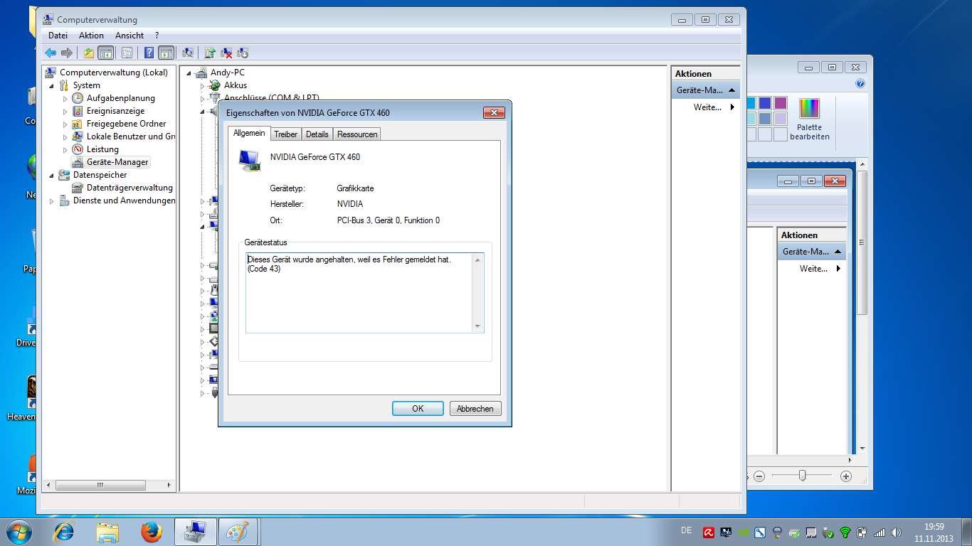Der Code 43 scheint ein Treiberproblem zu sein, das und das habe ich gefunden. Könnte aber auch an der GPU liegen, hast du diese mal in einem Tower getestet?