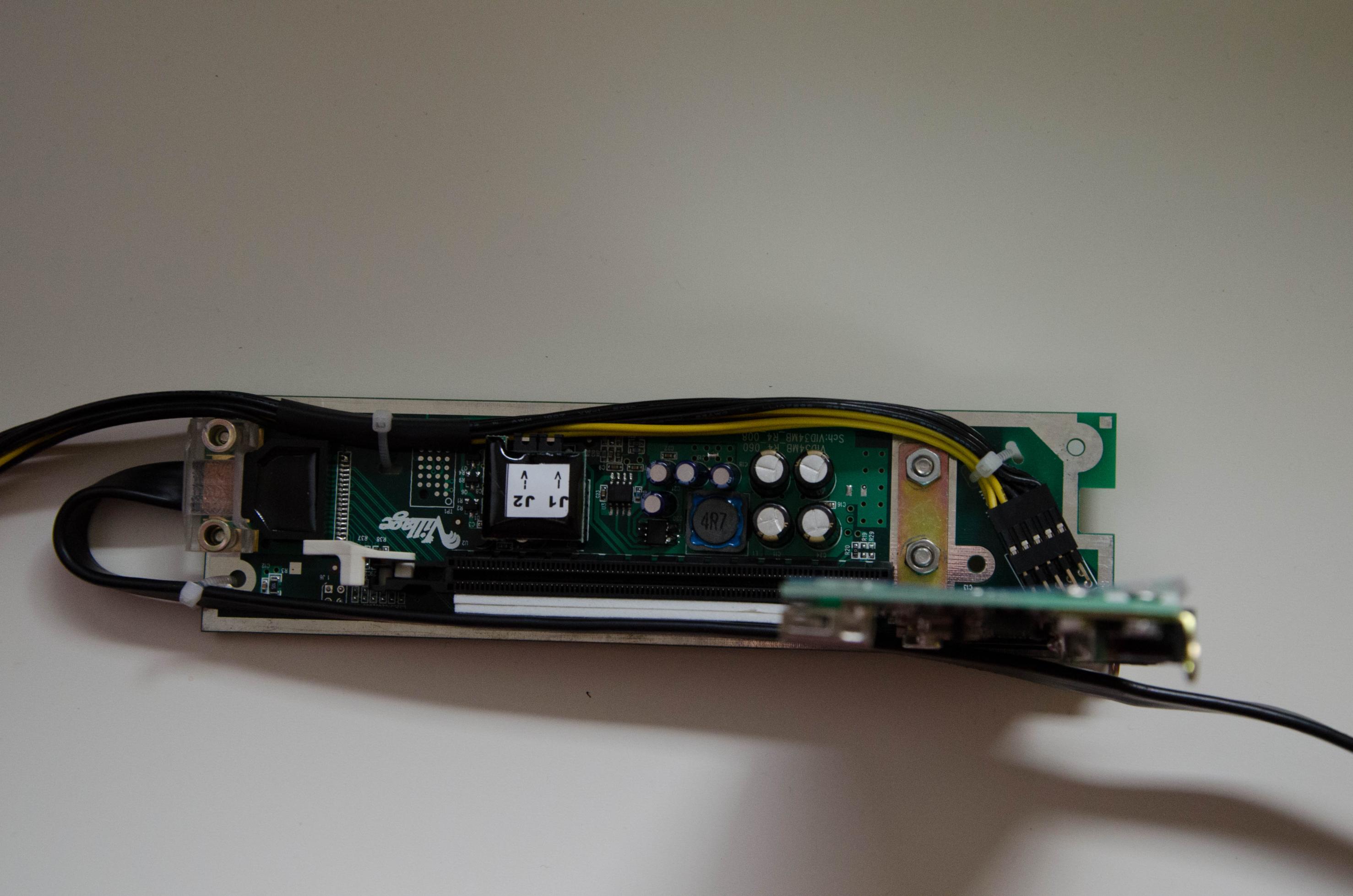 Zu deinem Problem mit dem Netzteil und dem PicoPSU sehe ich da er wenig Hoffnung. Das hat den Grund, da du an die Stromanschlüsse vom ViDock kommen müsstest, und dafür müsstest du wahrscheinlich die Buchsen auf dem ViDock "Adapter/Mainbord" wegmachen, bedenke auch das du Platz für den Stromanschluss für den PicoPSU brauchst.
