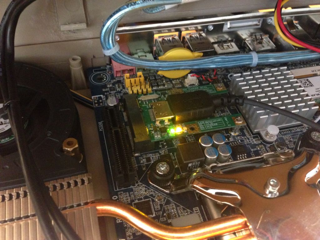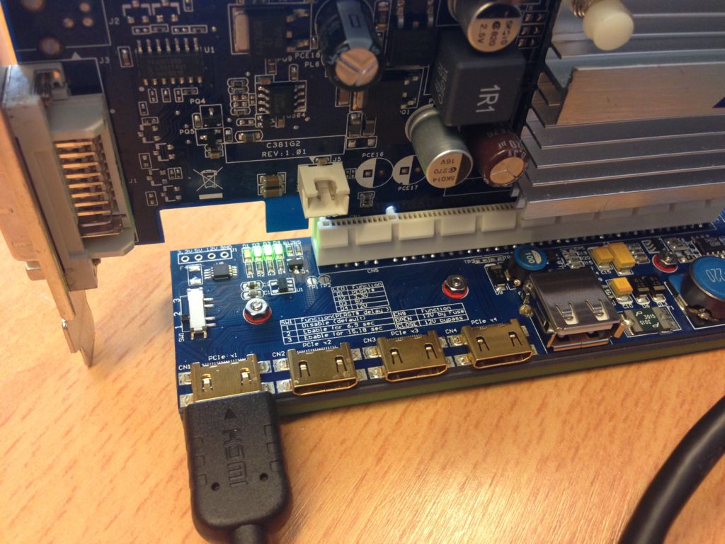 , natürlich passte der PM3N dann nicht in den mPCIe Sockel weil er zu lang war und dann die Ram Sockel im Weg waren... Also geschaut und kurzerhand gekürzt, dann passte es. Nun brannte auch D1 rot (nicht so schwach wie vorher) und wenn ich den PC einschaltete ging die LED aus und die anderen 3 leuchteten grün. So soll das wohl sein. Leider war auf diesem PC Windows 8.1 und irgendwie wurde die Karte, eine GTX560 Ti immer noch nicht erkannt. Ich hatte dann keinen Nerv mehr und wollte nur noch wissen ob es auf einem anderen PC mit Windows 7-64bit geht. Und siehe da, eingesteckt und sofort wurde ein VGA Adapter erkannt. Ich konnte auch die Treiber installieren, leider störte sich die Karte dann mit dem eingebauten Intel HD Grafikchipsatz