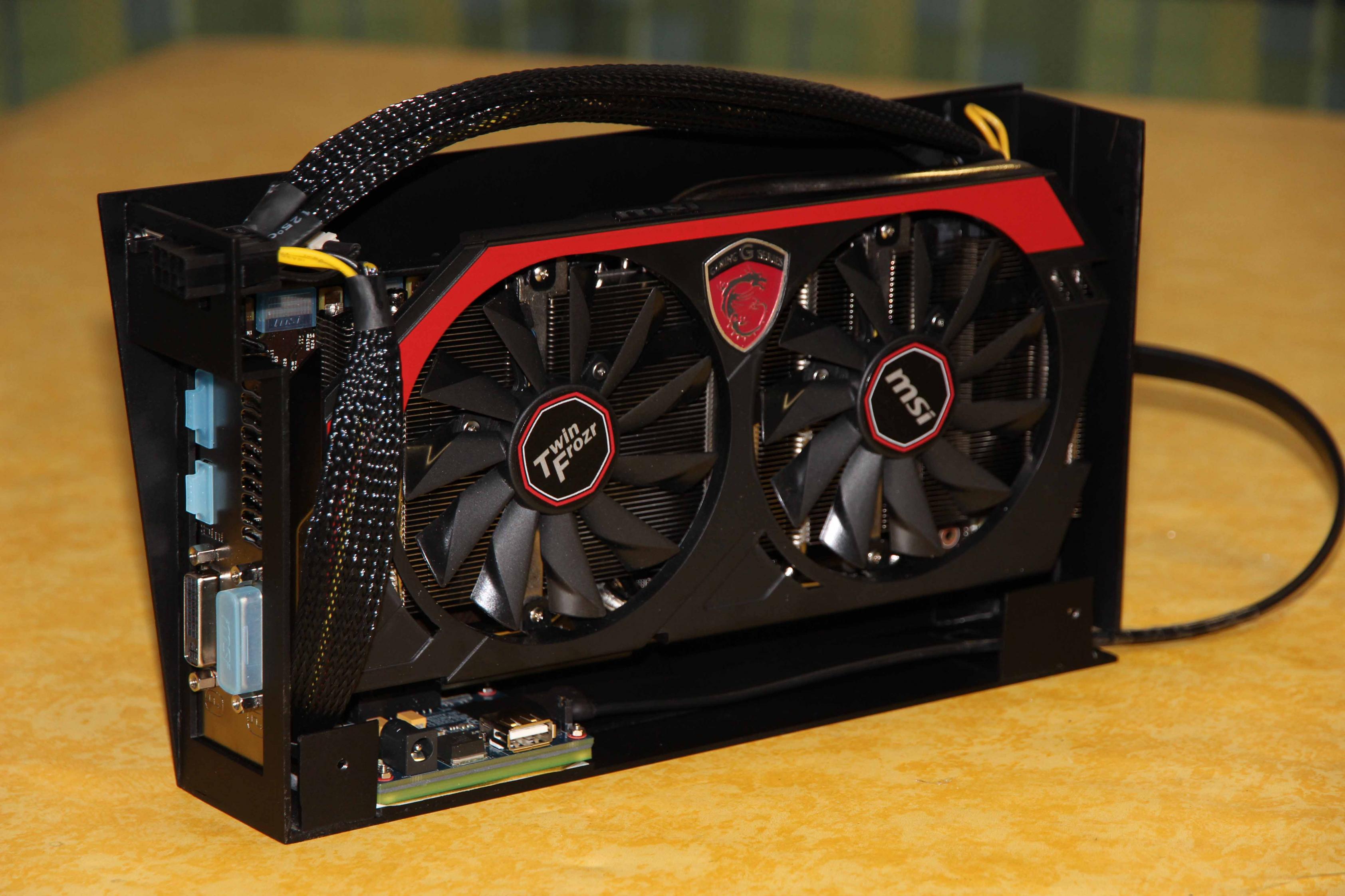 Ich arbeite aktuell an einem Gehäuse. Bzw. eigentlich steht alles, nur bekomme ich die eGPU nicht mehr(es lief schon alles) zum Laufen. Ich wollte das unpraktische Flachbandkabel durch ein HDMI Rundkabel (2 Meter) ersetzen. Ein kleines Stück Flachbandkabel habe ich einfachheitshalber an der Platine sowie an der Card gelassen, damit ich einfach nur mit dem HDMI Rundkabel überbrücken muss. Die Erdung habe ich zusammengefasst und auf ein einziges Kabel gelegt.