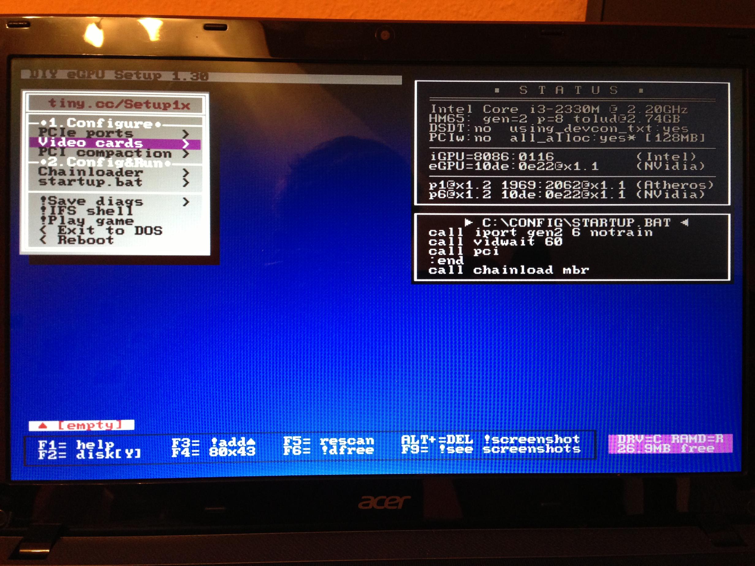 Eisbrechers Link zu einem Guide, der direkt in EFI eingreift, hat nicht auf anhieb geklappt. Unter anderem funktioniert die dortige Syntax nicht bei mir. Aber ich erhoffe mir von der dort vorgestellten Idee noch am meisten, denn es scheint möglich zu sein, in EFI direkt Speicher der eGPU gutzuschreiben... nur hab ich noch nicht heraus gefunden wie.