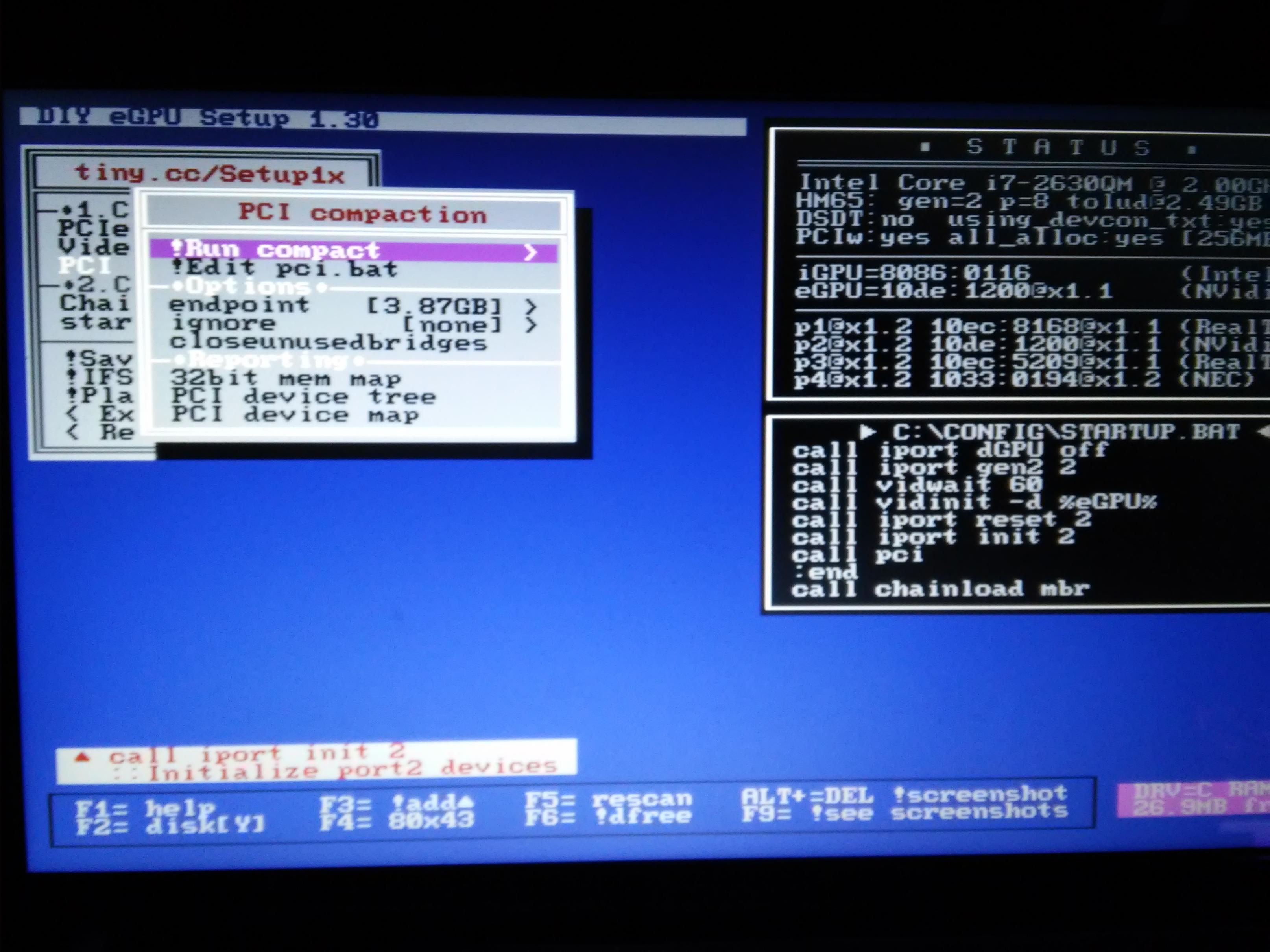 Zur Abschaltung der dGPU nehme ich Setup1.3 mit den Einstellungen iport dGPU off, vidinit -d, iport init2, iport gen2_2. Grafikkarte wird auch ohne Problem in WIN7 und in den Nvidea Systemsteuerungen erkannt.