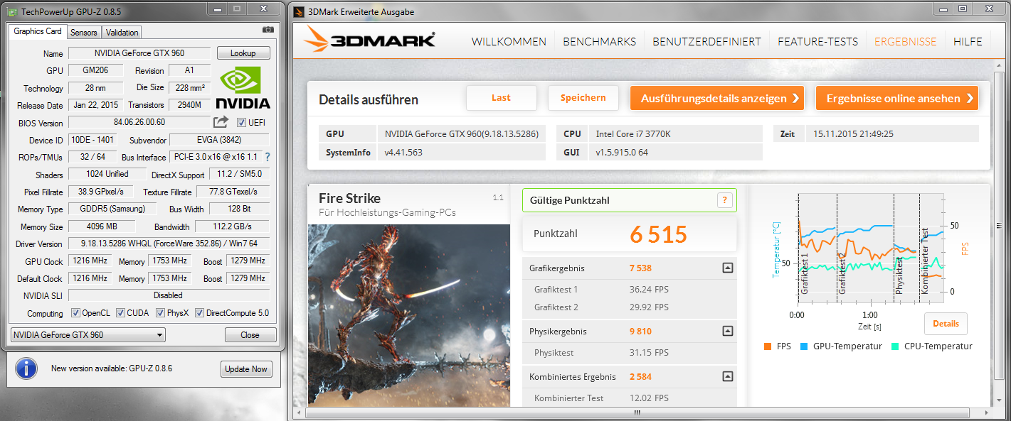 28% weniger als am PC. Ebenso verhält es sich in GTA V. Ob das Bild auf den an die direkt an die GTX 960 angeschlossenen Moni oder auf den Laptop-Moni ausgegeben wird ist unerheblich.