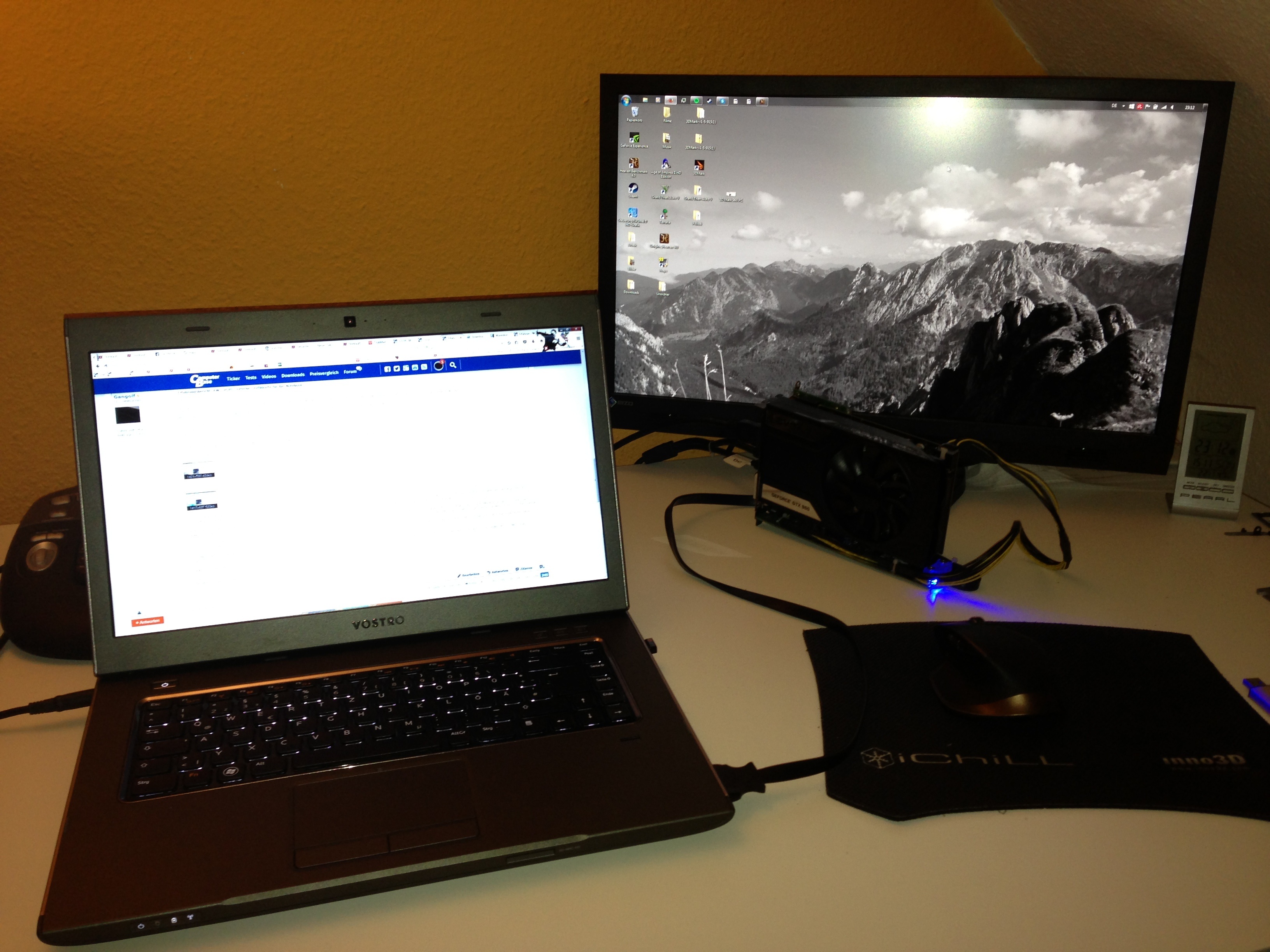 bin günstig an ein Dell Vostro 3560 gekommen und habe mein im Schrank rumstaubendes ViDock 4 Overdrive inkl. einer GTX 960 4GB per Expresscard angeschlossen.