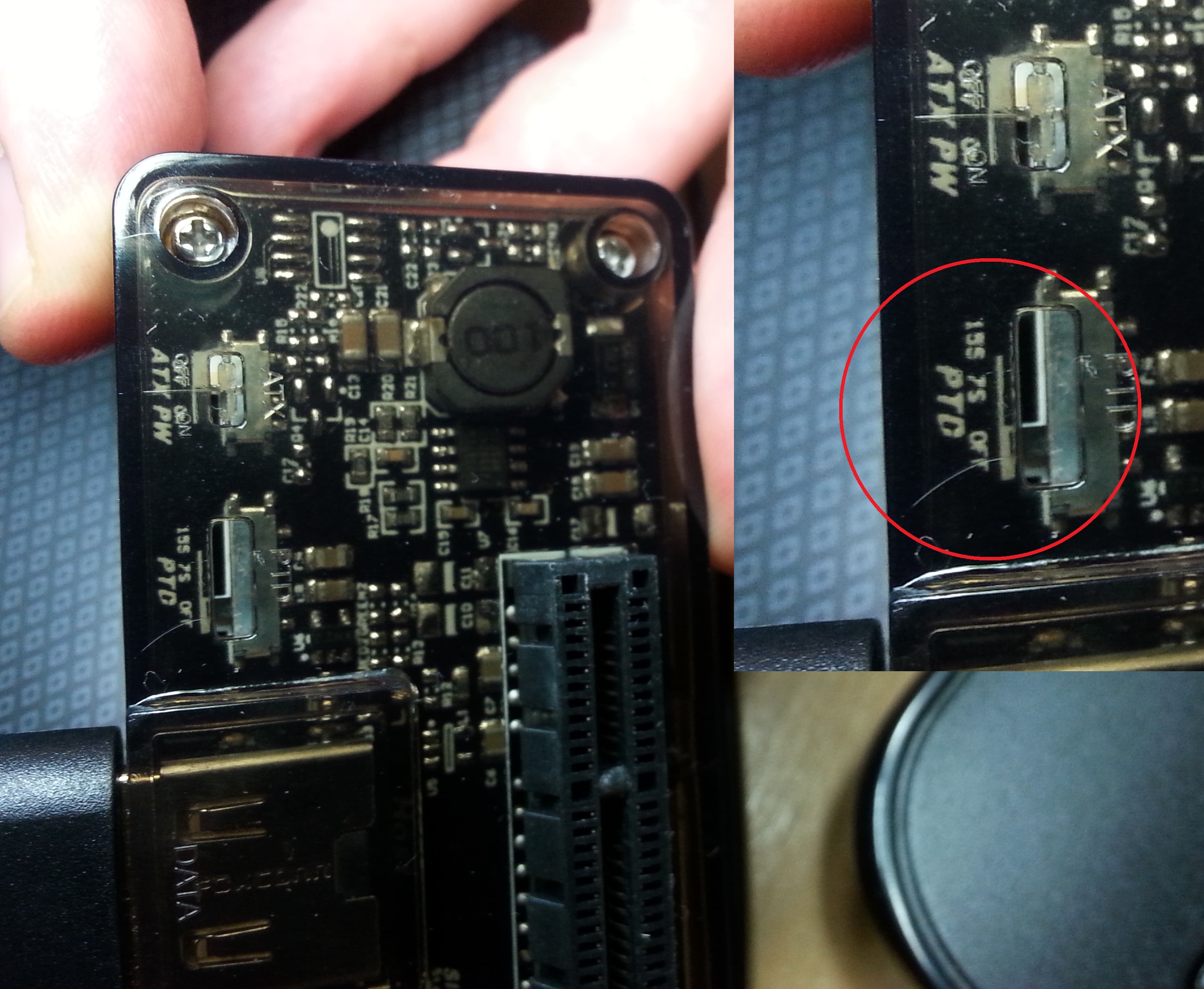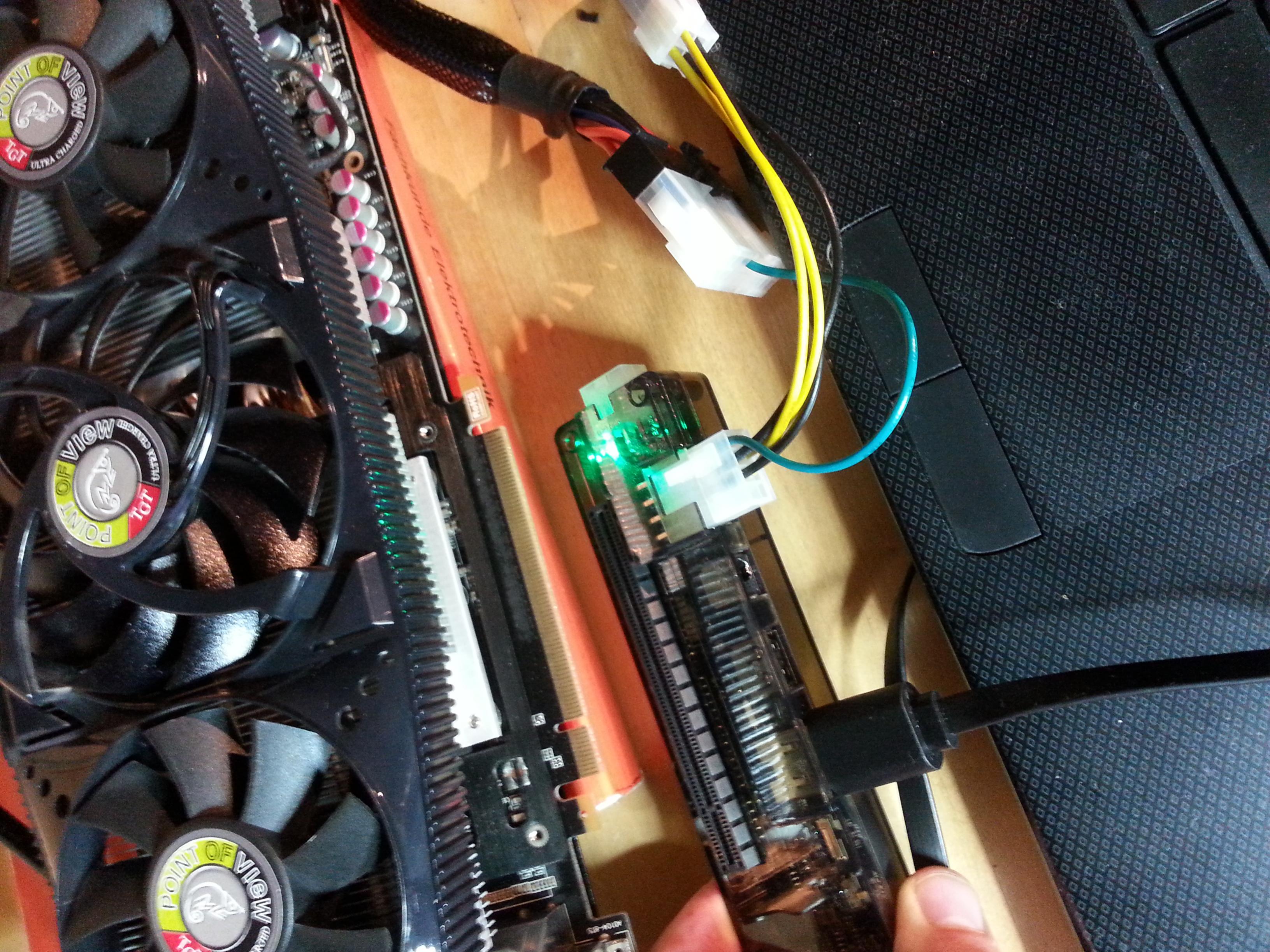 Ich verwende dazu einen HDMI-Switch, denn wenn die eGPU aus ist, hängt meine Quadro vom T530 hauptsächlich am Monitor. Ich habe zu dem noch einen Bridge-Stecker auf dem 2-pin-Kontakt gesteckt (bei dir am PE4C 3.0 in der Nähe der SW-Schalter), damit der Adapter gleich von Anfang an ein PCIe-Signal sendet. Ansonsten sind Punkten 2) und 3) ähnlich. Das ist dem Umstand geschuldet, dass die Erkennung über den Treiber jetzt anders funktioniert. Früher konnte ich mir das Ausstecken, wenn der Anmeldebilschirm auftaucht, und das Wiedereinstecken danach sparen. Naja, es funktioniert wenigstens. Den 375.63 habe ich auch am laufen. Neuere habe ich noch nicht probiert. Die Leistungsunterschiede sind ja eh marginal.