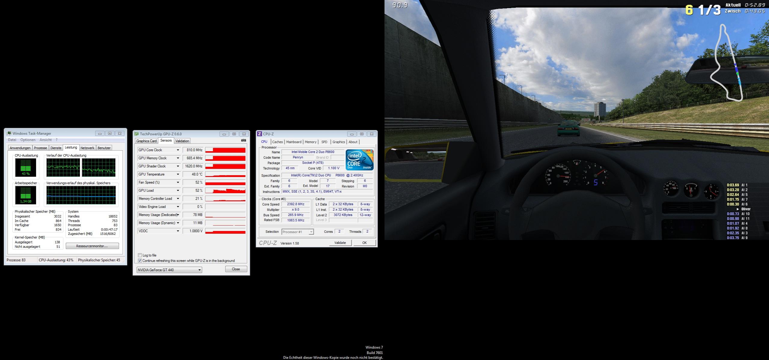 Auf einem ext. 20 zoll Monitor ist das Spiel "Live for Speed" fast 3 mal so schnell in 1280x800 und mit den gleichen Einstellungen wie auf dem x200 mit X4500MHD vorher.
