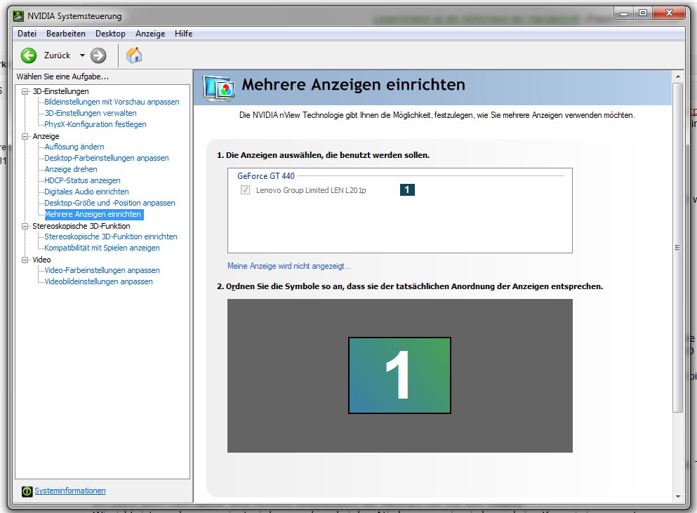 "Die NVIDIA Anzeigeeinstellungen stehen nicht zur Verfügung.