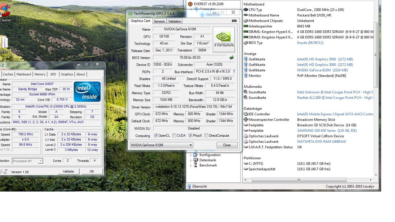 - neugestartet (musste die ExpressCard zwischendurch auswerfen, sonst kein Boot möglich, E2EC wurde nach Winstart wieder eingesteckt)