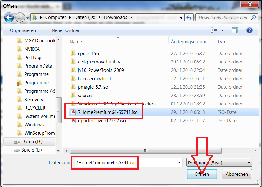 ich hab mir gestern Windows 7 Home Premium x64 als Iso-Datei geladen aus den link hier im Forum.