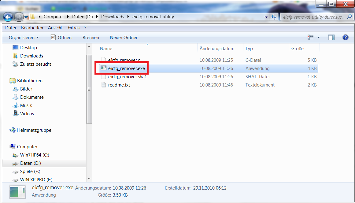 Beim nochmaligen ausführen des Tools sagt mir das am Ende die Datei ei.cfg wieder hergestellt wurde.