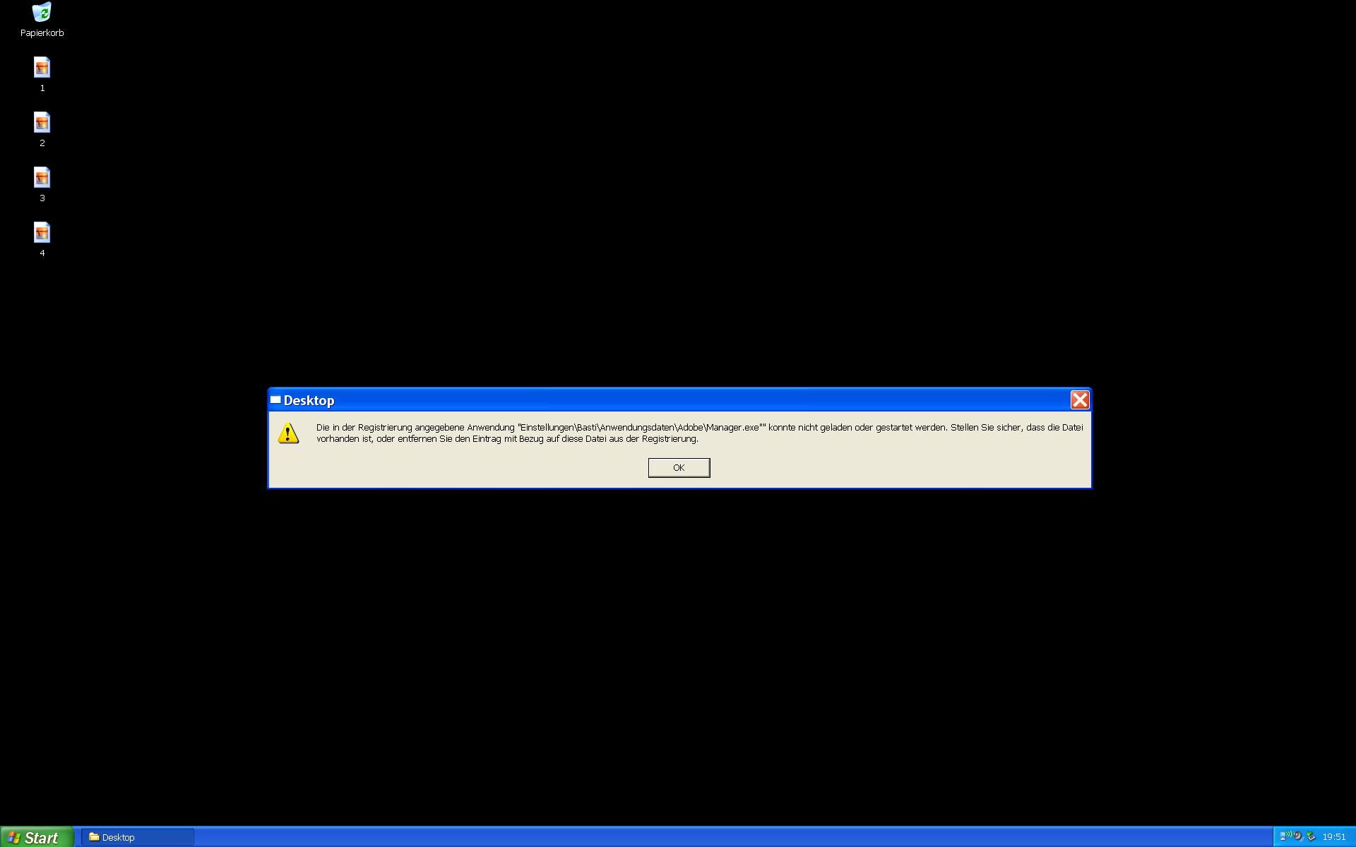 Hm... hier wird ein Pfad zu einer Exe-Datei fehlerhaft aufgerufen. Normalerweise gehört dieser in Anführungszeichen, damit die Leerstellen im Pfad nicht als Ende der Syntax begriffen werden. Was mich aber eher irritiert, ist der Aufruf an sich. Denn einen "Adobe Manager" kenne ich nicht und obwohl ich selber haufenweise Adobe-Software nutze, befindet sich diese Datei auch nicht auf meinem Computer.