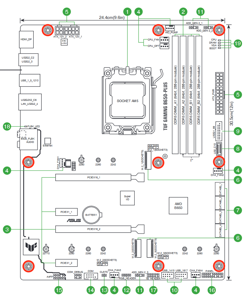 Edit: Zwei mal grüne Nummer 5 im Handbuch auf der Seite mit dem Board Layout.