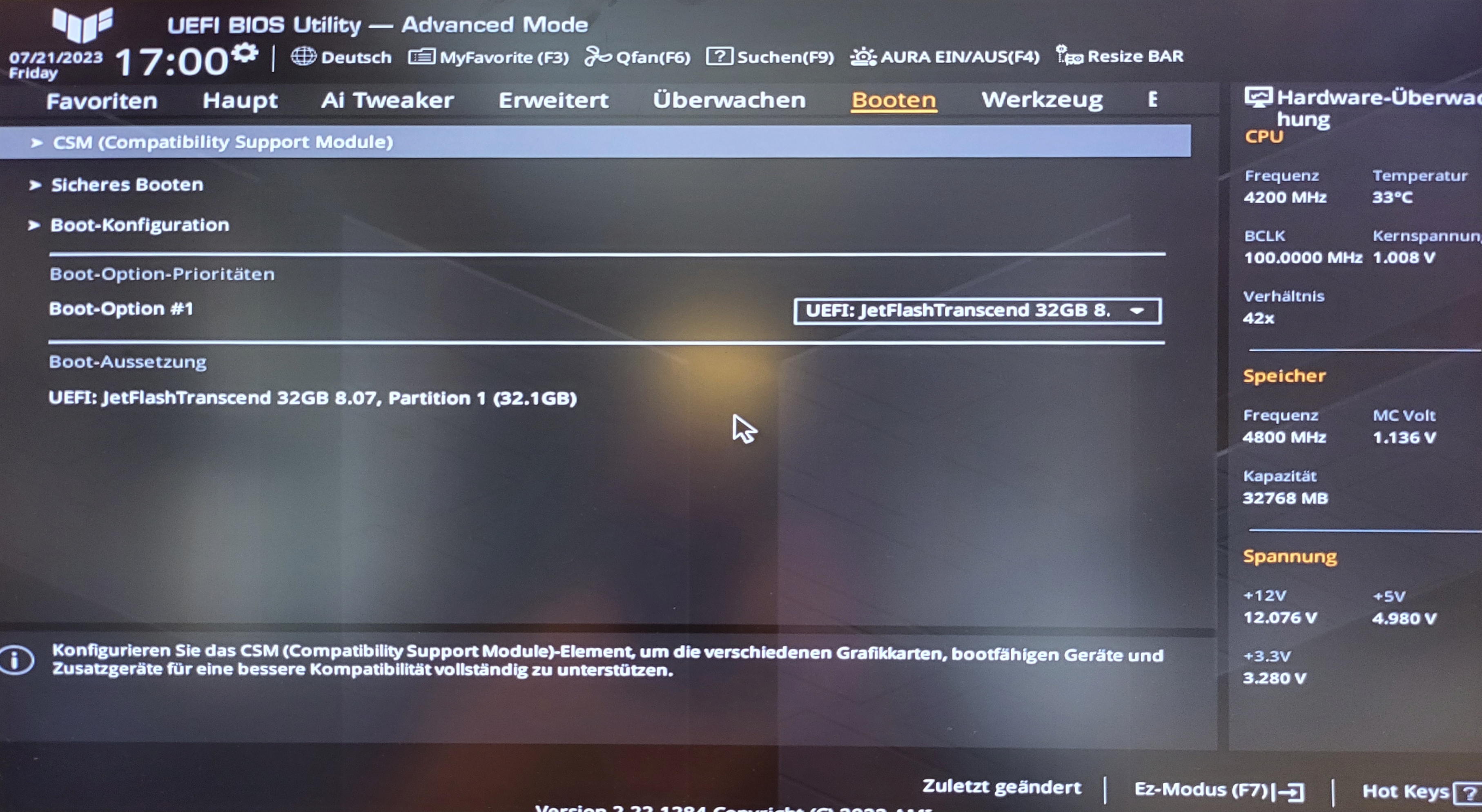 Weiters ist mir aufgefallen am selben Bild, dass bei den RAM steht 4800MHz obwohl ich 6000MHz habe. Hat das etwas zu bedeuten oder wird das erst später richtig erkannt?