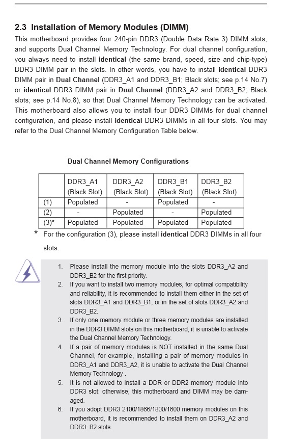 Please install the memory module into the slots DDR3_A2 and