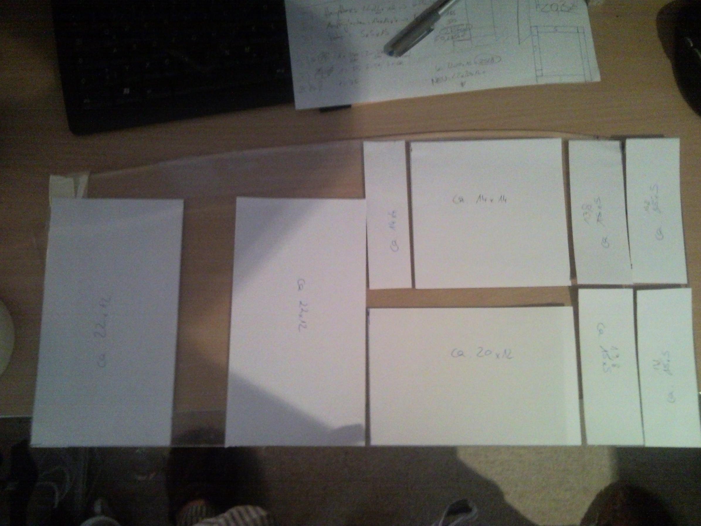 der schlimmste "Fehlbruch" ist mir beim halbieren der platte passiert. Musste dann etwas umdisponieren und die hauptbox noch mal um 2cm in der Länge kürzen: