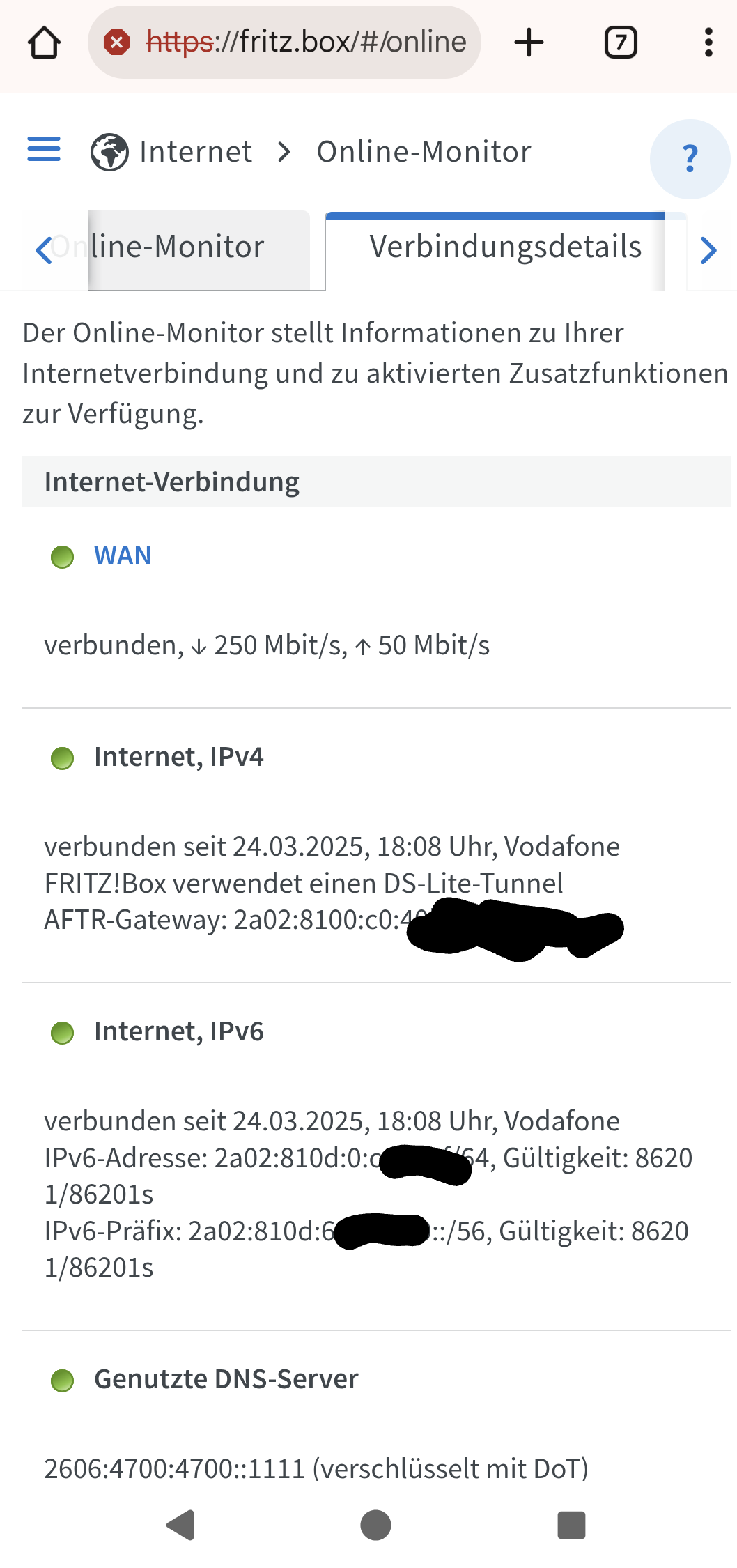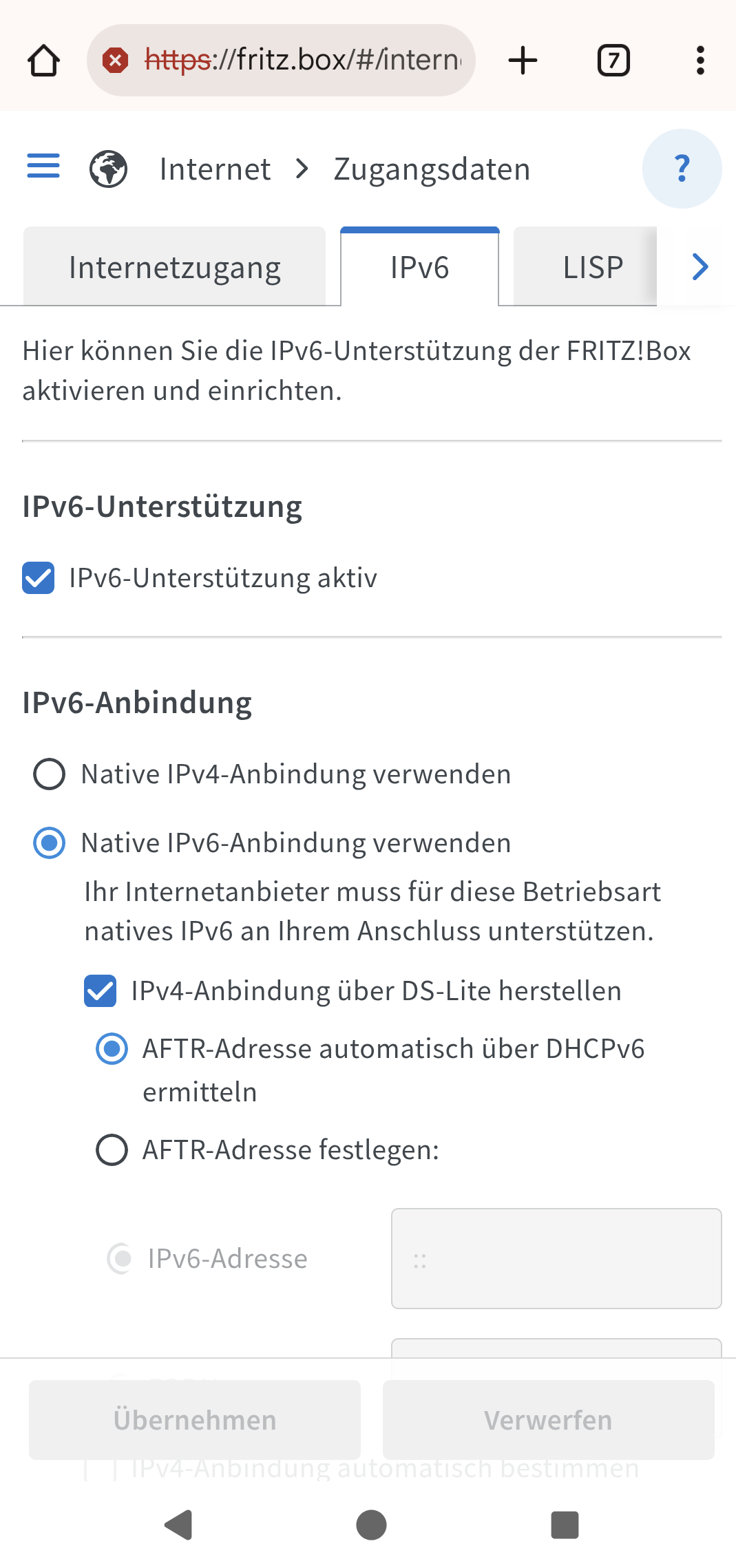 Ursprünglich hatte ich vor, unter Zugangsdaten und nativ IPV6 den DS-Lite Tunnel wieder zu aktivieren. Die Option hat aber meine 6690 nicht.