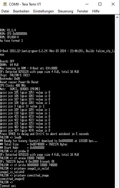 Hi, ich habe hier ein Huawei SFP Modul wie von dir beschrieben behandelt. Flash kurzgeschossen und 1224ABORT.bin per XModem hochgeladen.