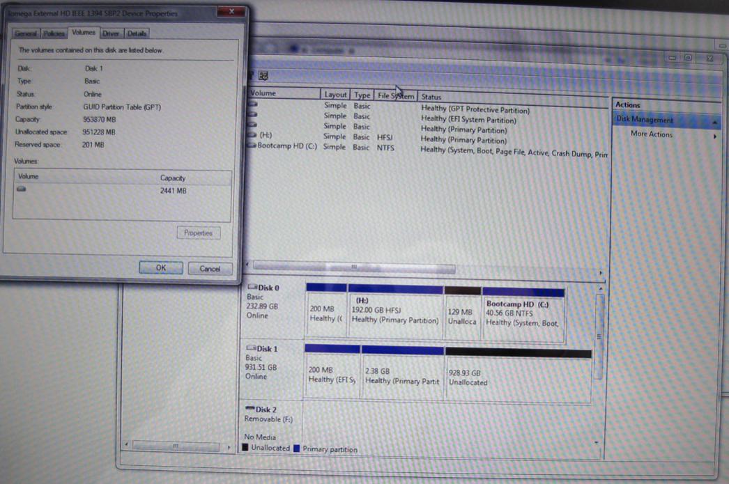 Daraufhin: Verschiedene Datenrettungsprogramme ausprobiert (u.a. DiskWarrior), hat alles nichts geholfen, im Gegenteil: schlimmer, unter Mac OS X wird mir die einst 1TB große Festplatte nun als 2.9GB angezeigt.