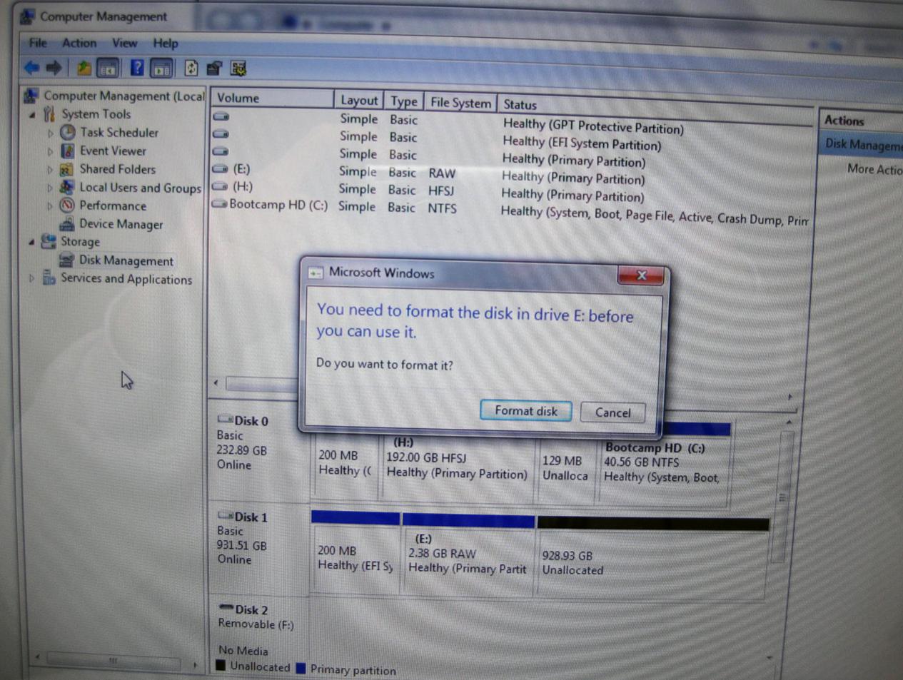 FEHLER: Hirn aus, und bestätigt, dass eine MBR-Tabelle geschrieben werden soll. Festplatte wird unter Windows als unpartitioniert angezeigt.