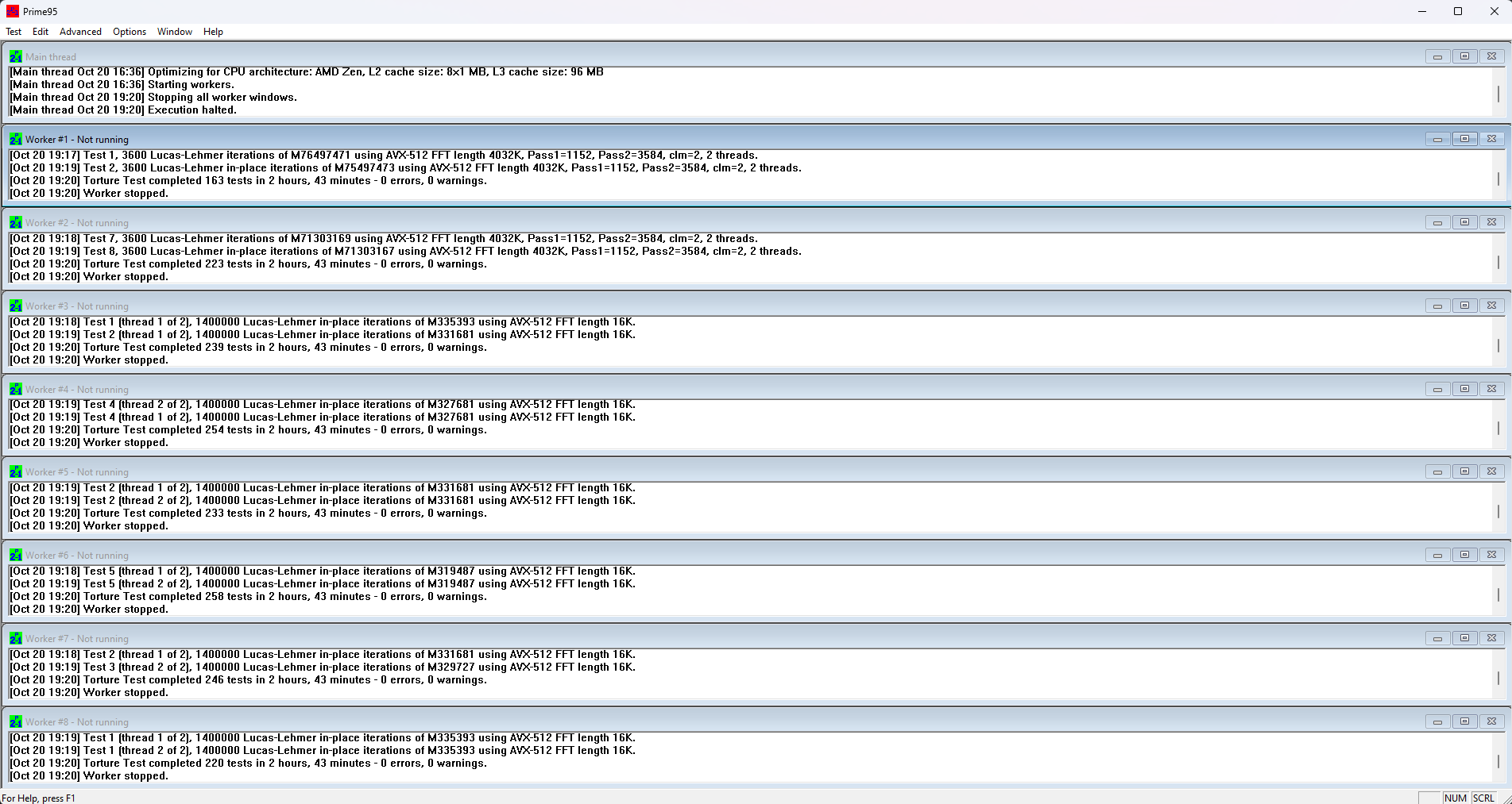 Ich habe, um den CPU mal zu testen, Prime95 drei Stunden durchlaufen lassen und habe bemerkt, dass ein CPU-Kern deutlich langsamer läuft, als die anderen. Meine Frage ist nun, ob das in diesem Maße überhaupt noch normal ist? Den CPU Stability Test habe ich auch laufen lassen und der meldet sofort ein instabiles System mit dem Fehler beim Prime-Test... allerdings habe ich auch schon gelesen, das Programm soll outdated sein.