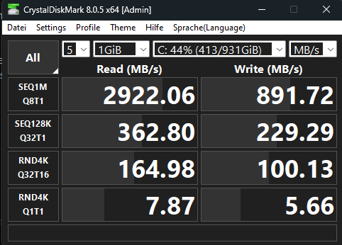 Nur eine der SSDs ist eine NVMe, die hat auch das System. Den Modus editiere ich hier gleich rein.