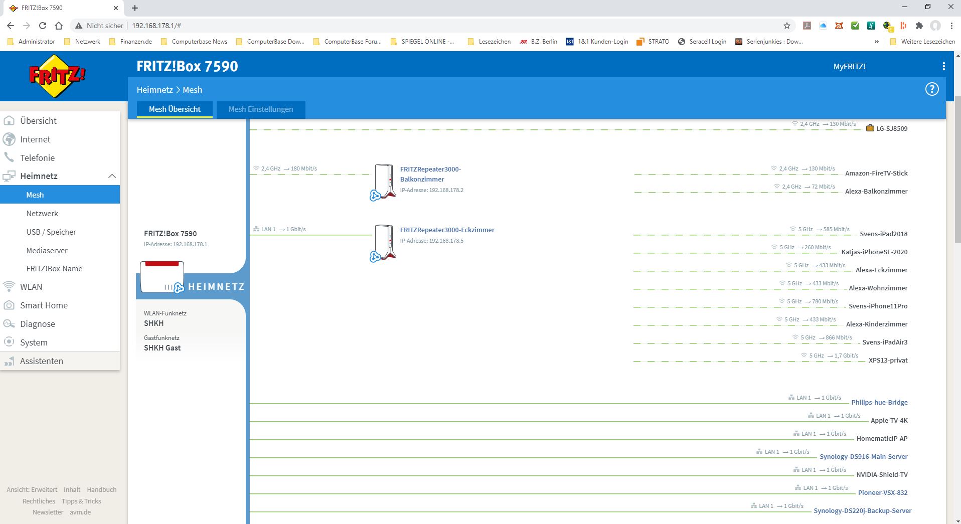 Meine Bedenken sind aber, dass das Netz dadurch teils recht langsam und instabil wird, insbesondere in Zimmern die weiter von Technikraum entfernt liegen, da es dann über mehrere Repeater hinweg zum Ziel springen muss.