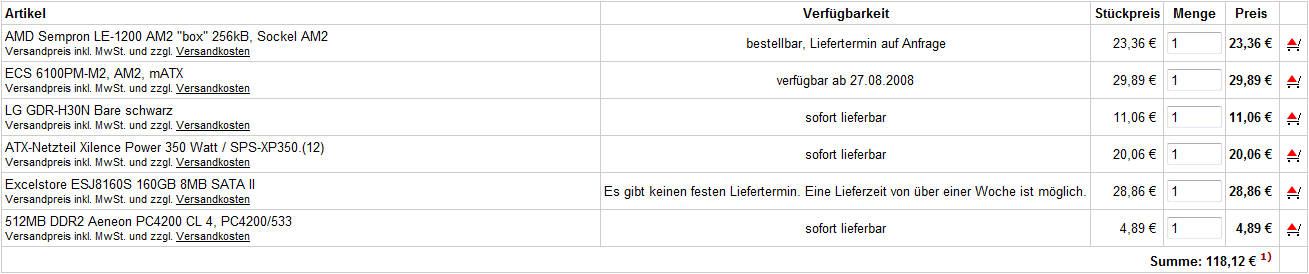 Der PC soll selbst geschraubt werden, nur aus Neuteilen bestehen und einen absolut minimalen Preis haben, dabei aber noch alle Funktionen eines PCs beherrschen können, wobei die Geschwindigkeit aber unwichtig ist.