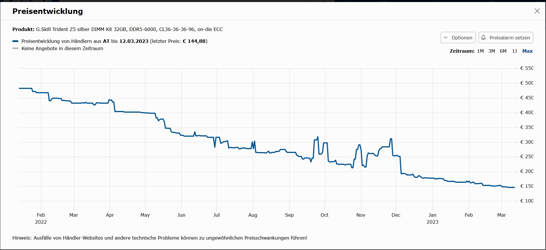 Was kosten aktuell gleich 32GB DDR5 6000er nochmal ? Achso.... ab 136€...