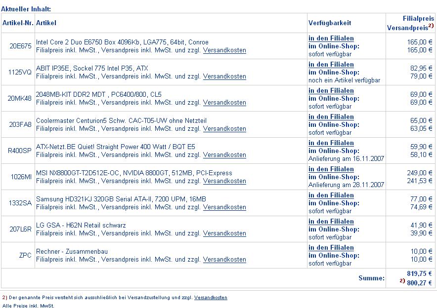 Moin moin FBler, da mein Rechner in letzter Zeit immer weiter auseinander fällt wollte ich mir jetzt mal was neues zusammenstellen.