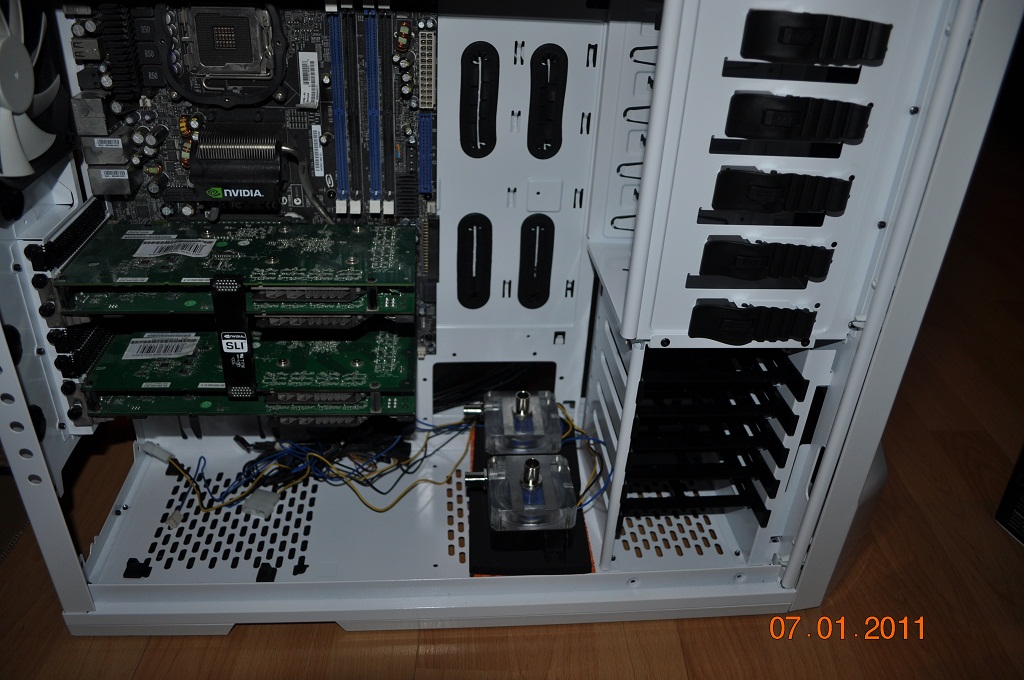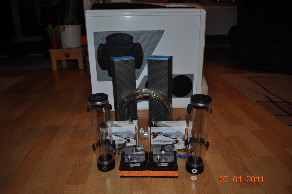 Die Kühlung für die Hardware steht jedoch schon fest. da ich ich Wakü freak bin wird das System komplett mit Wasser gekühlt. Die Wakü wird aus zwie Kreisläufen bestehen. Ach ja fast hätte ich es vergessen unter das Mainboard kommt noch eine Plexiglas platte die beleuchtet wird.