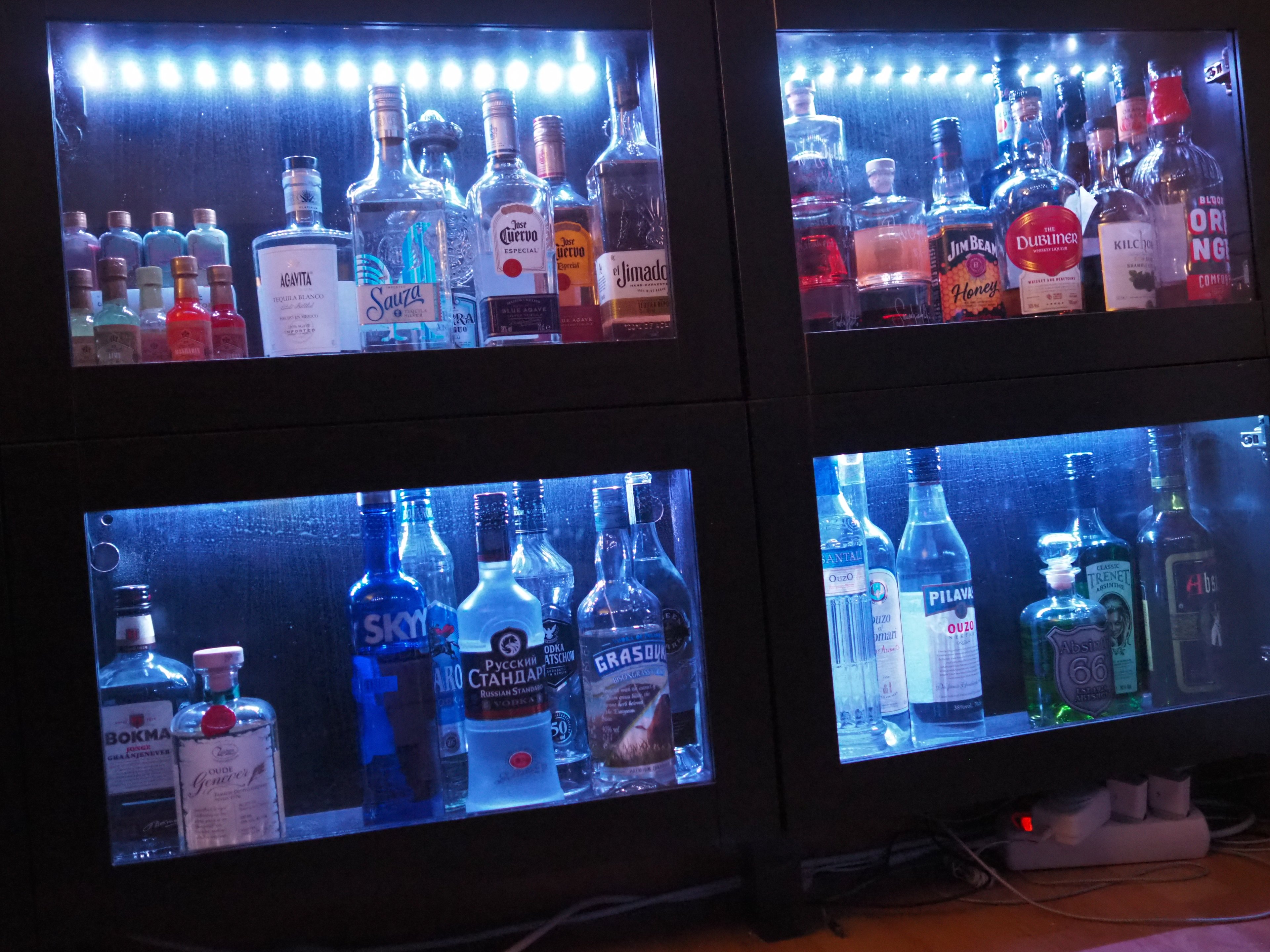 Und das Dritte Problem ist, dass die Zeit leider etwas drängt. Morgen (04. Februar) kommt unsere neue Küche. Das bedeutet die 500 Flaschen Alkohol welche fein säuberlich in Fleischer Kisten verstaut sind müssen dort weg und in das Regal wo ich erst noch die LED Streifen anbringen muss.