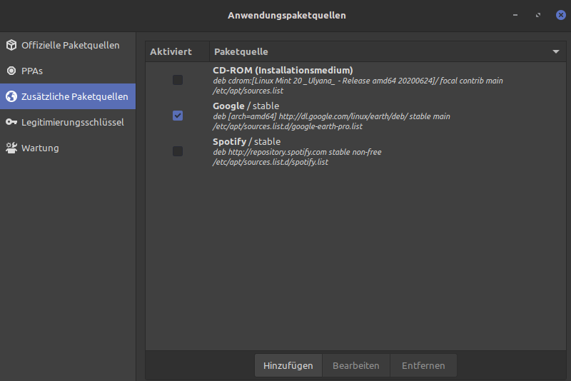 Vielleicht gibt es ja Parallelen: Ich kenne bei Linux Mint ebenfalls bei einer Google-Anwendung (GoogleEarth) eine Fehlermeldung bei Aktualisierungen. Kann man bei den Paketquellen hier aber abwählen wenn man das "Aktiviert"-Kreuzchen wegnimmt.