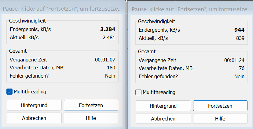 | 1,7 | Core i5-4210U beim Basistakt (64Bit) | 2947 | 5890 | 7031 |