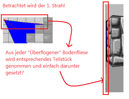 * Ein "Stripe" zeichnet sich also durch eine Höhe und einer Position von oben aus und ist einen Pixel breit. Wenn man sich jetzt im Raum dreht und z.B. sich eine Wand (z.B. 6|3) anschaut hat die eine Dicke. Wo kann ich steuern, wie dick die Wand ist? Und wie bekomme ich jetzt meine Textur auf die Wand? D.h. technisch ist mir das schon klar, ich meine aber wie ich immer den richtigen Pixel-Streifen finde, sodass am Ende auch die ganze Textur lückenlos/sprunglos dargestellt wird? (War das verständlich?)