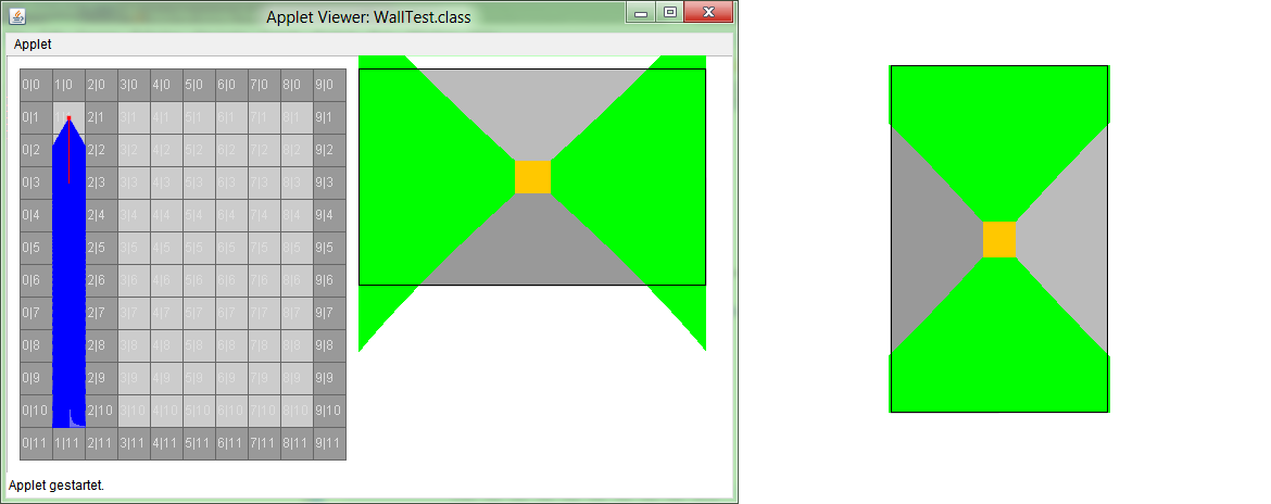 Ich denke, dass das Ergebnis relativ genau ist und genau genug für diesen Spieltypus.e-Laurin schrieb:Das mit den Linien hängt damit zusammen, dass du eine begrenzte Anzahl Strahlen losschickst. Es sind nicht genug, um jeden Winkel einer Fläche oder einer Wand beliebig genau abzutasten. Also entweder lässt du es so, oder du wirfst mehr Strahlen raus (zB in Halbgradschritten).