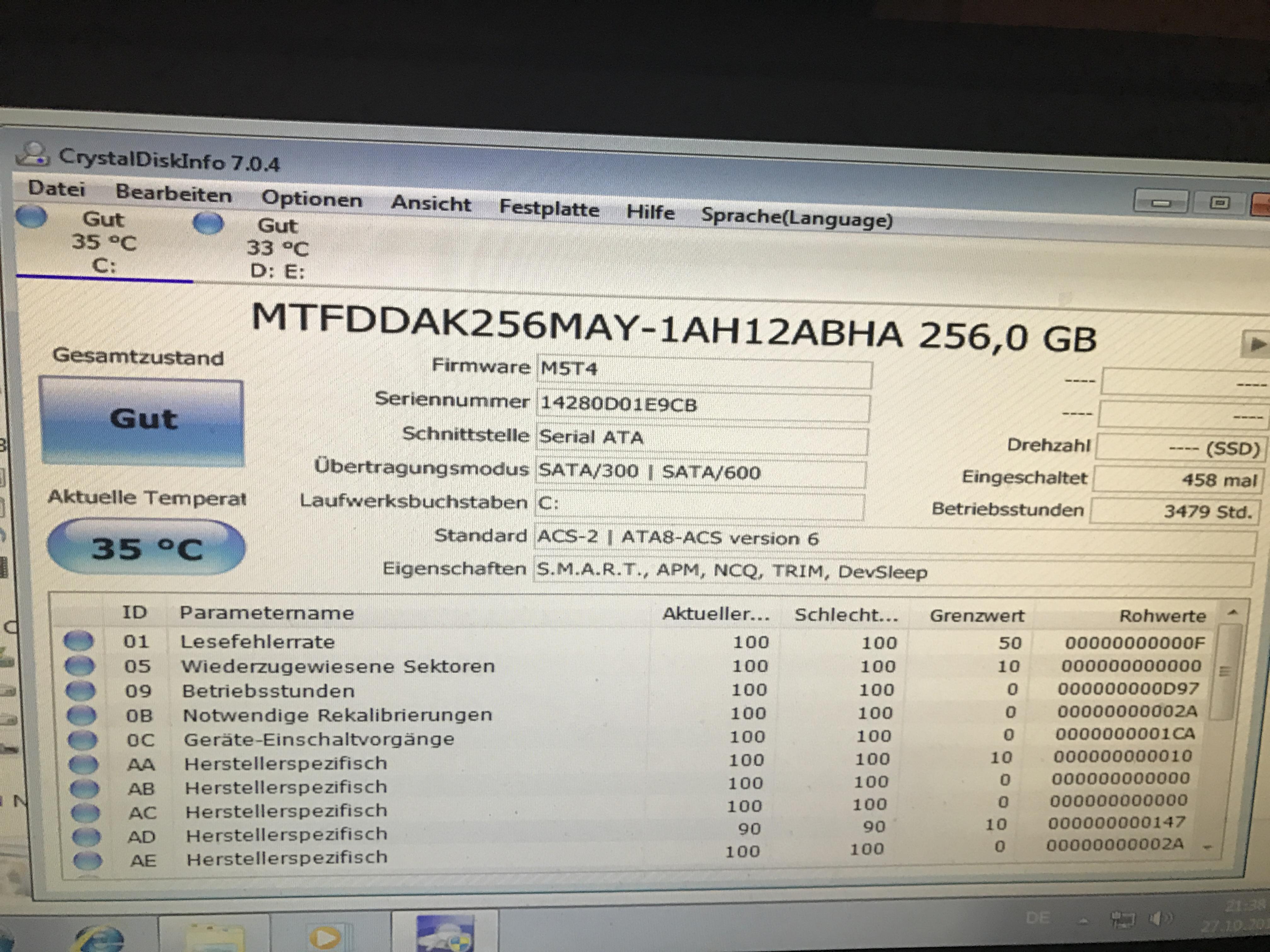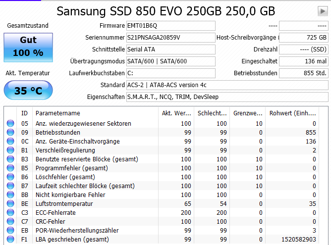 mir wurde heute angeblich eine SSD Samsung EVO 850 250 GB eingebaut...Im Gerätemanager steht die als Laufwerk