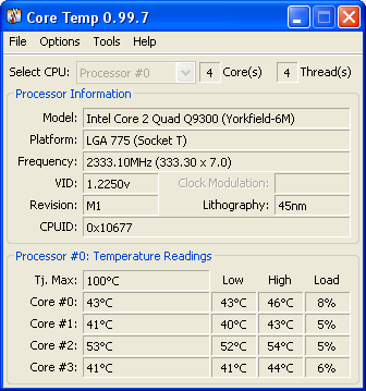 ich hab mir vor ein paar Tagen mal CoreTemp runtergeladen und festgestellt, dass ein Core immer ca 10°C wärmer ist als die andern.