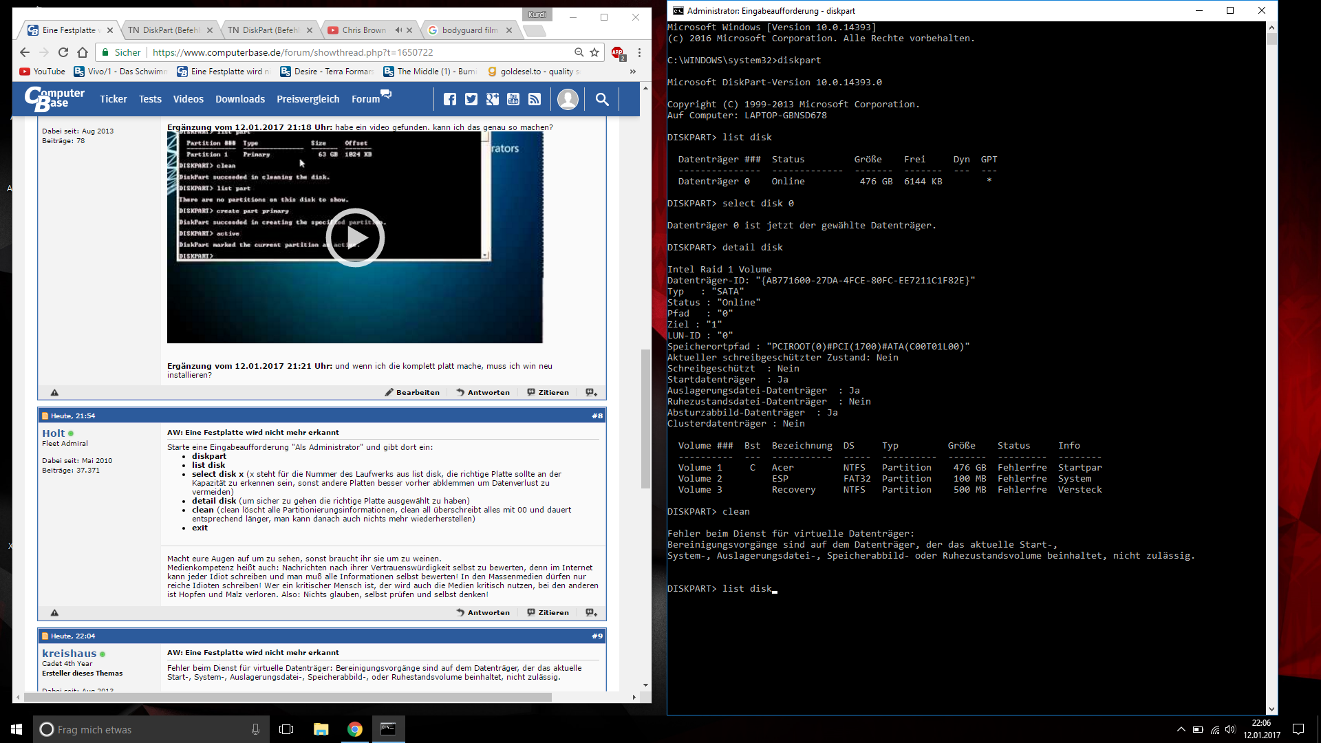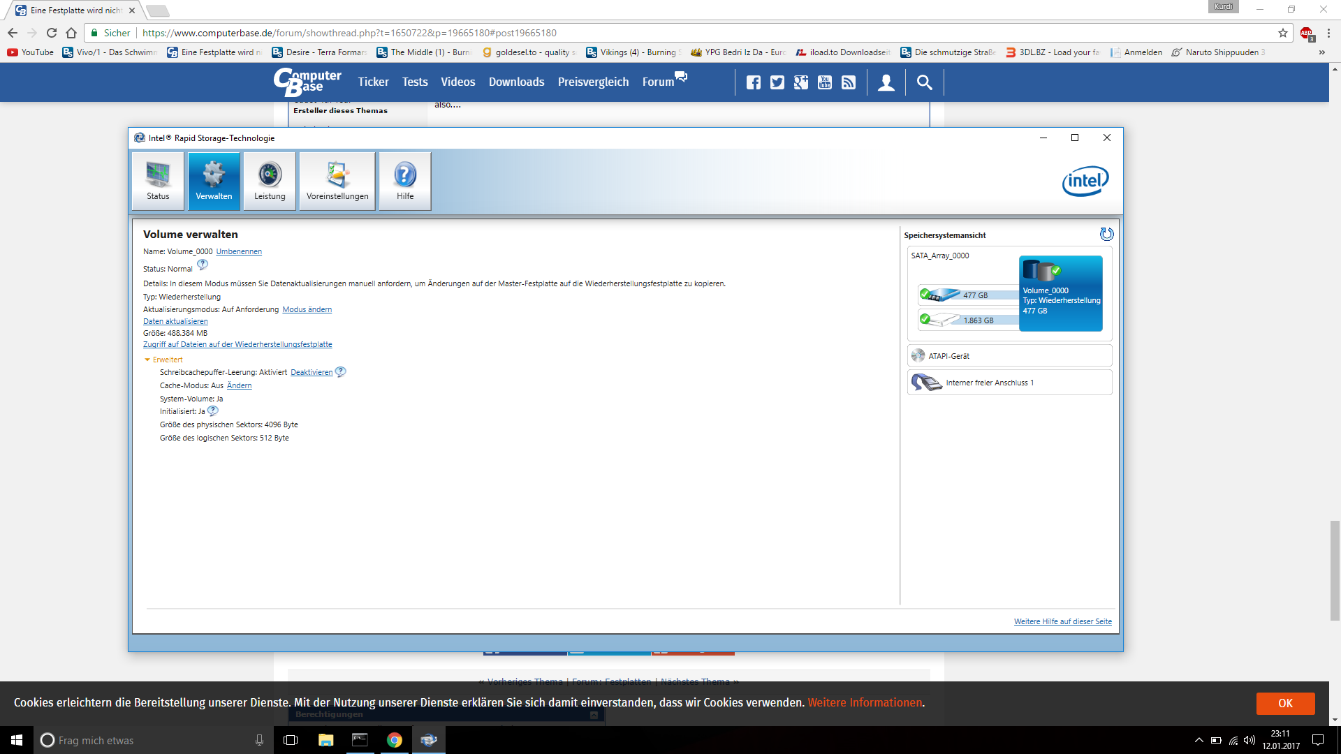 Guten Tag, ich habe mir ein neues Notebook gekauft und jedes mal als ich es hochgefahren habe erschien irgendwas mit Intel Rapid storage- technologie. ich habe einfach mal drauf gedrückt und irgendwas gedrückt damit die meldung nicht mehr erscheint. zwar erscheint jetzt nichts mehr, doch ich habe nur noch zugriff auf eine Festplatte( 500gb SSD). auf die anderen 2TB HDD habe ich keinen zugriff mehr und ich weis nicht warum. Ich weis nicht worauf ich gedrückt habe :/ .