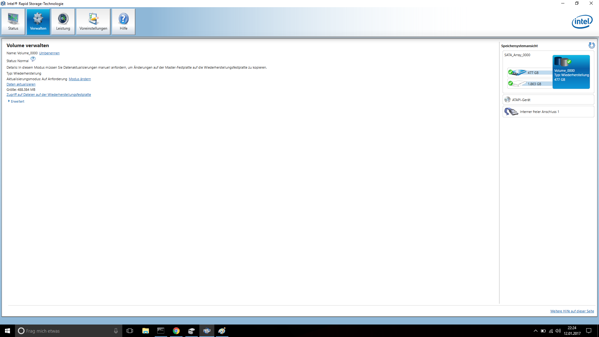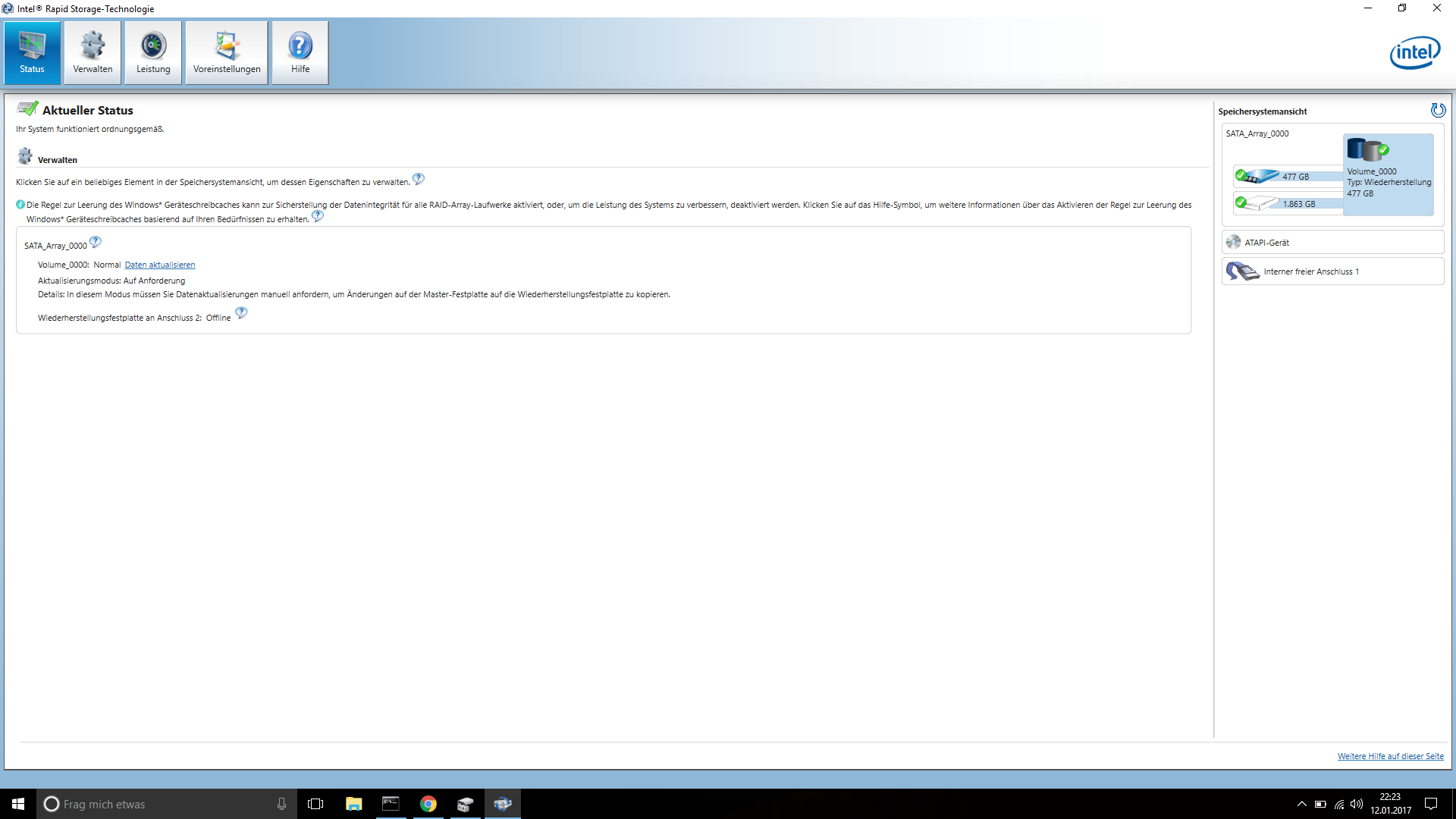 Im geräte manager ist unter Laufwerke nur noch Intel Raid 1 Volume.