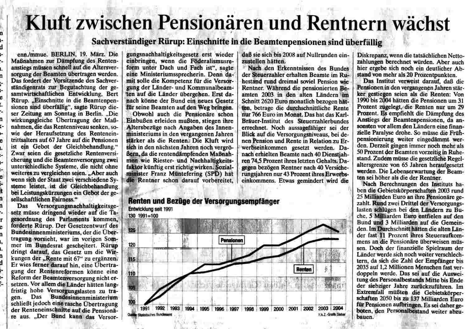 FAZ vom 28.3.06, also von heute. Und netterweise von der FAZ auch online-gestellt, wenn auch unter anderem Titel ("Sandwich-Generation klingt netter als Reformverlierer"). Was wir schon gelegentlich hörten jetzt nochmals expilzit ausgesprochen und recht gut zusammengefasst: