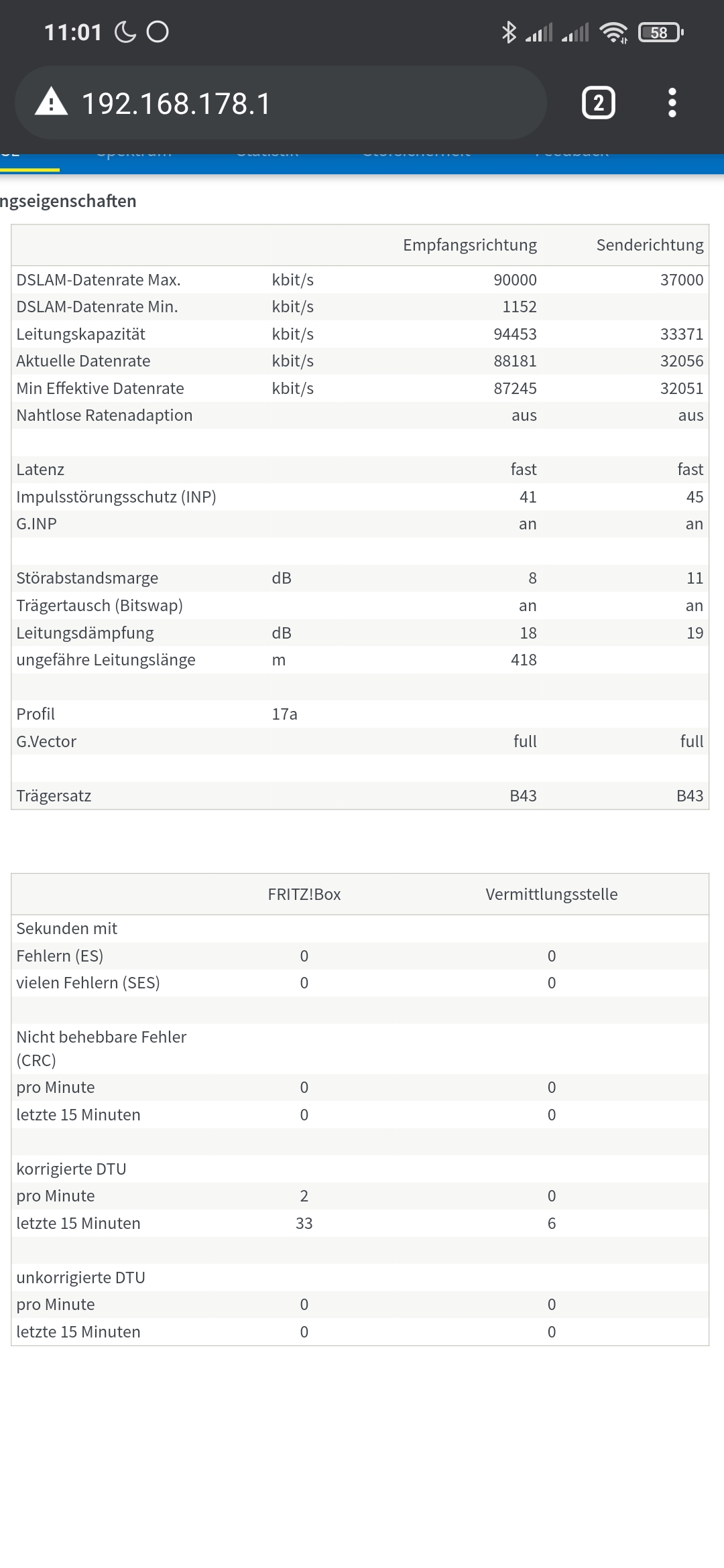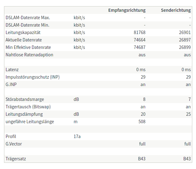 Hier der Vollständigkeit halber die DSL-informationen: