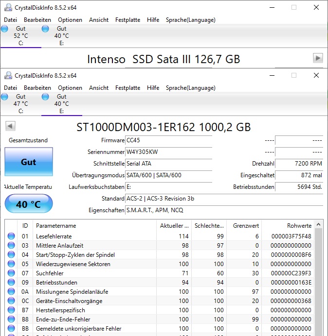 Fazit: Keiner der beiden "Fehler" kann ursächlich für Dein Problem sein, das Du mit Sicherheit leichter im Zuverlässigkeitsverlauf identifizieren könntest.