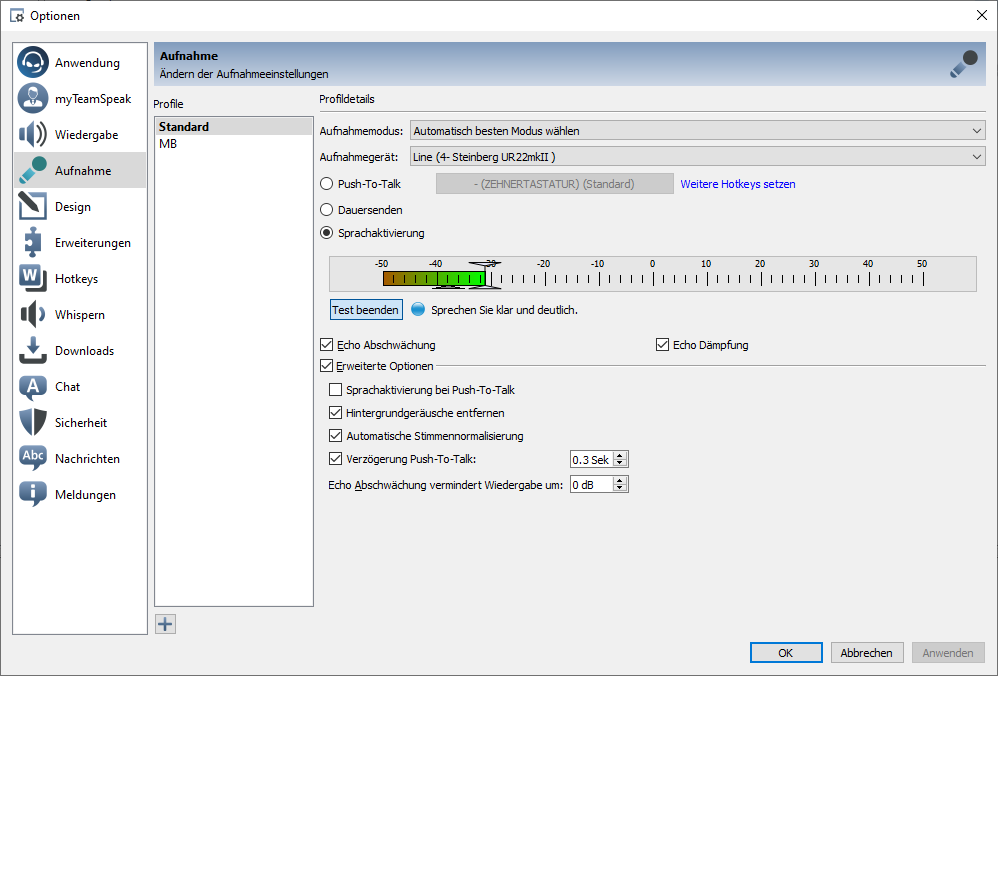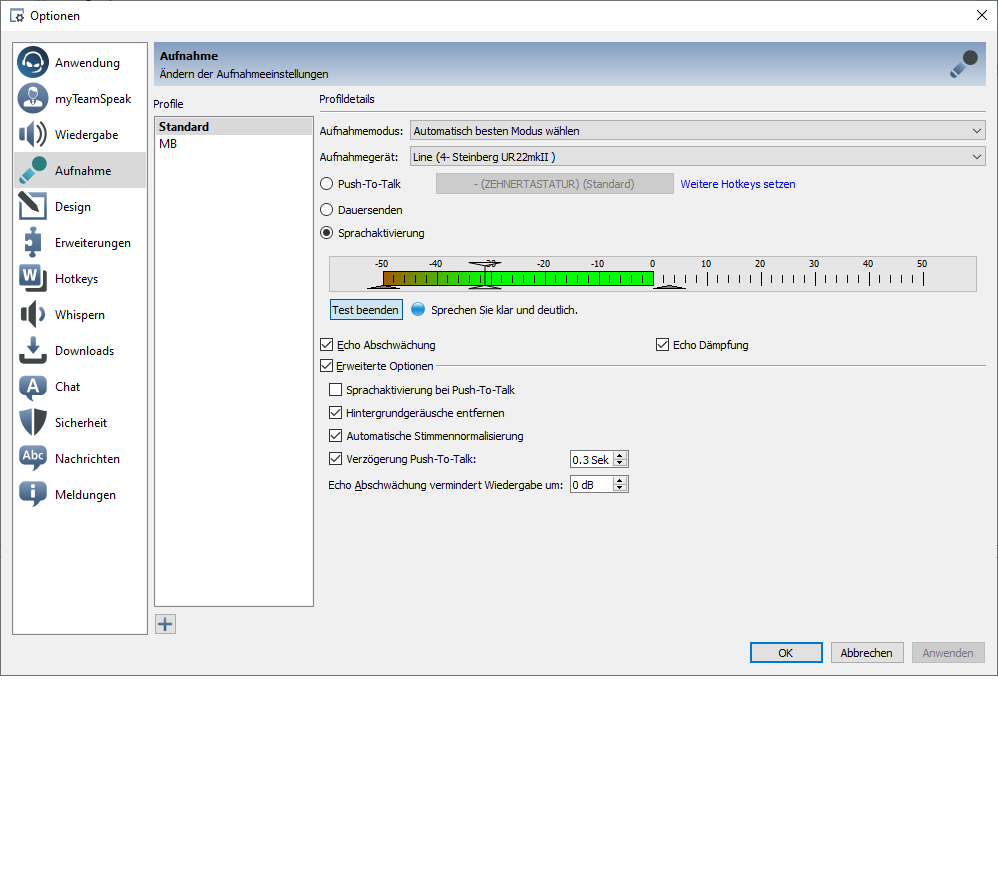 Auch wenn ich das Aufnahmegerät in Teamspeak oder Discord auf Voicemeeter / Voicemod umzustellen ist das Problem trozdem vorhanden. Also bei den Programmen selber funktioniert alles Einwandfrei nur bei Teamspeak und Discord nicht.