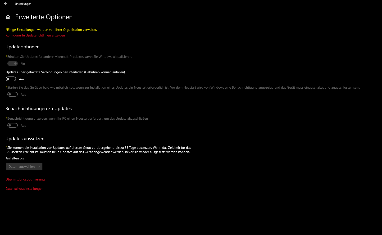 Ich habe jetzt seit einiger Zeit, das Problem, dass ich einige Einstellungen in meinen Windows Update Einstellungen nicht ändern kann, da meine Einstellungen angeblich von meiner Organisation verwaltet würden... Welche Organisation das sein soll und woher das ganze kommt ist mir allerdings ein Rätsel.