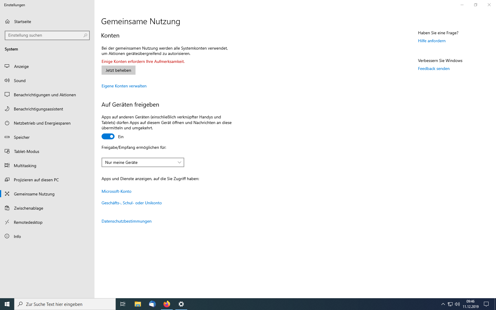 seit letzter Zeit taucht immer wieder die Meldung ,, Einige Konten erfodern ihr Aufmerksamkeit" bei Windows 10 auf.