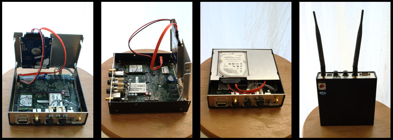 Speichergeräte: Boot from SD card (connected through USB), external USB or m-SATA SSD. 1 SATA data + power connector.