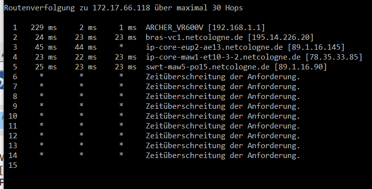 Wenn ich mit der IP statt dem Namen arbeite kommt noch ein weiterer Fehler hinzu:
